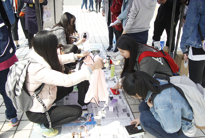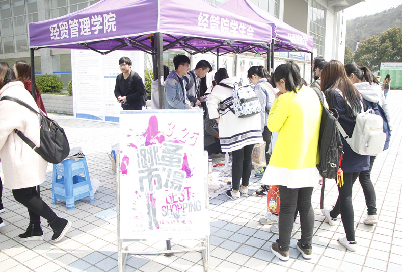 最热闹的活动便属跳蚤市场,3月29日中午,大活北广场人头攒动,路过的同学都被热情的“老板”们的叫卖声和琳琅满目的小商品所吸引,纷纷前来围观,好不热闹。或是《卫生经济学》、《幻夜》等书籍;也有指甲油、散粉等女同学钟爱的化妆品;还有保温杯、闹钟等生活必需品;甚至还有扫地机这样的扫地神器。挑一挑样式,看一看质量,再经过几回讨价还价,买到心仪商品的同学,脸上不时浮现出舒展的笑意。小物品,大用处,小小的跳蚤市场妙趣横生,展现更多的是员工会对大家的服务,通过对闲置资源的再分配,给同学们的生活带来了便利。