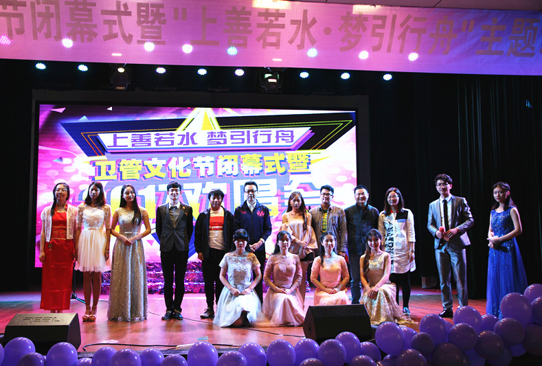 2017年5月5日晚,williamhill第六届卫管文化节闭幕式暨“上善若水·梦引行舟”主题欢唱会在大活小剧场华丽上演。校员工工作处、校团委、公司领导、新生班级辅导员和学业指导老师莅临晚会现场。比赛特邀青年歌唱家王菲老师、人文与政治教育公司王小丁副经理、校团委李松骏老师等担任评委。