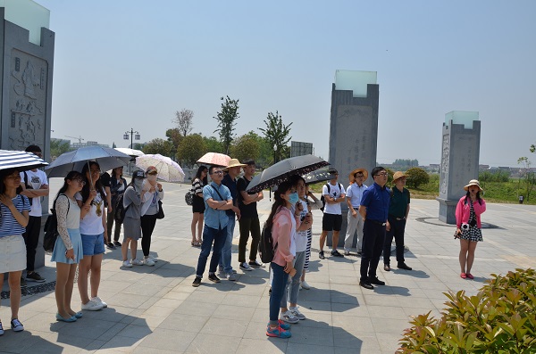 江苏中药科技园以中药材种植为中心,产学研三结合,主要建设3个功能区,暨中草药种植示范区、中药材科普科教区、农业科技培训及办公生活区。该园区拟于明年5月份正常运行,有望建成“国内一流,江苏第一”的示范性中药产业科技园和中药养生特色小镇核心区。大家饶有兴趣地参观了中药材示范种植、科教科普、农业休闲观光、养生保健等特色设计项目,并结合自己所学专业就园区道地药材的选苗、种植、采收、加工、使用等环节提出疑问并获得园区工作人员的专业讲解。师生们高度赞赏园区建设取得的成绩,并对园区进一步建设及管理工作提出了自己的看法,江苏中药科技园办公室卢军锋主任陪同参访。
