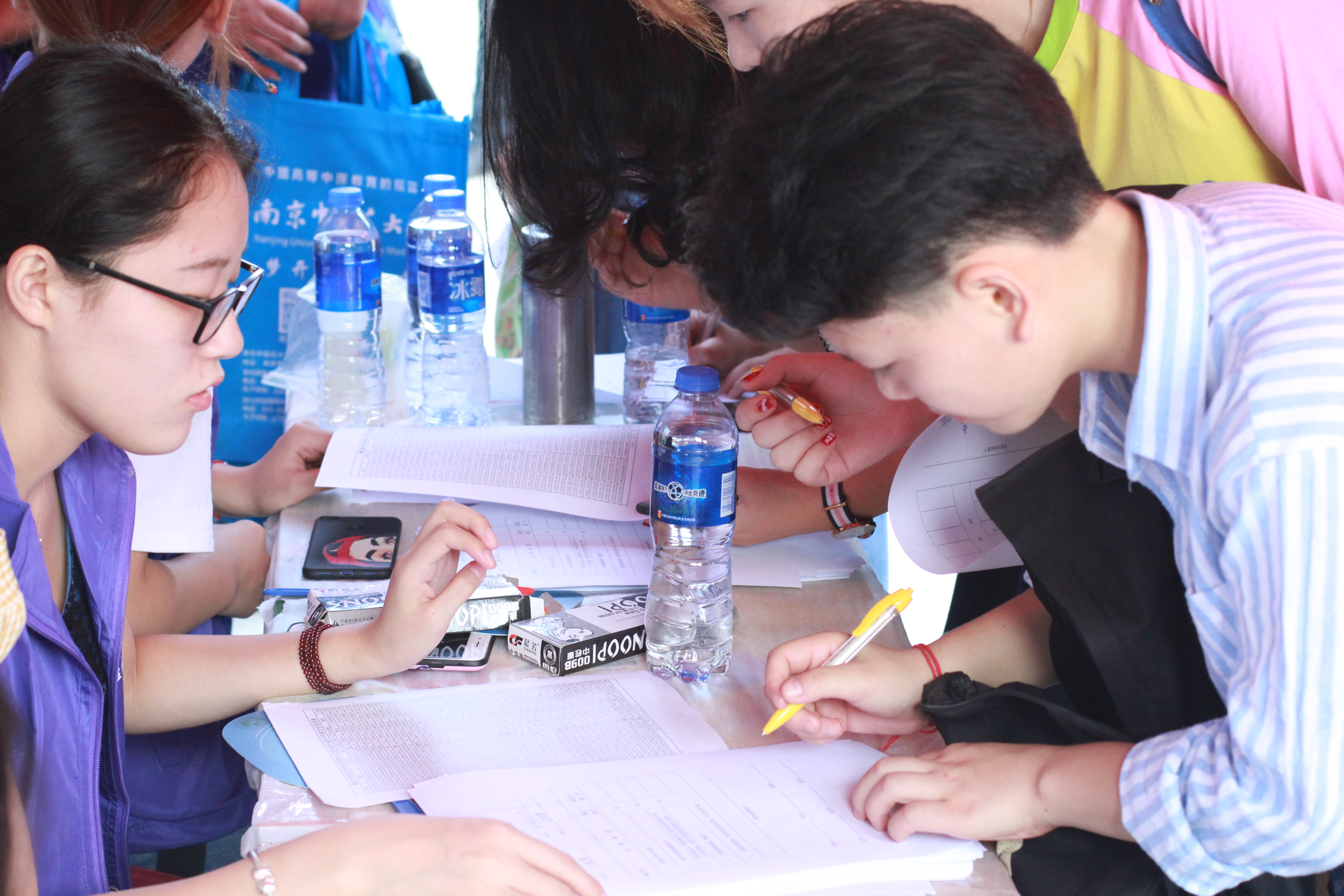 早上八点,新生报到正式开始。相比去年,今年晴朗的天气为迎新任务增添了不少活力的色彩。此次迎新共分为内场和外场两部分。场外志愿者引导新生填写报到单,细致耐心地帮助新生查找学号和宿舍号等信息,并分发装有新生指南的手提袋。场内的志愿者则引导新生完成身份证识别、信息录入及领取校园卡和体检单的工作。针对办理贷款的同学,特开通绿色通道,帮助新生顺利入学。