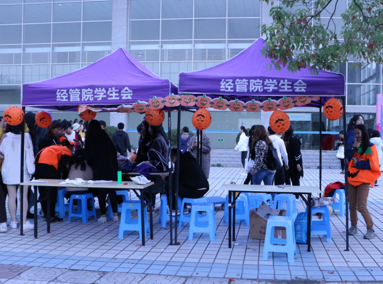 值得一提的是,活动举办当天正值万圣节前夜,工作人员特地布置了具有万圣节特色的帐篷,可DIY制作南瓜灯,吸引了过往师生驻足停留,现场十分火爆。