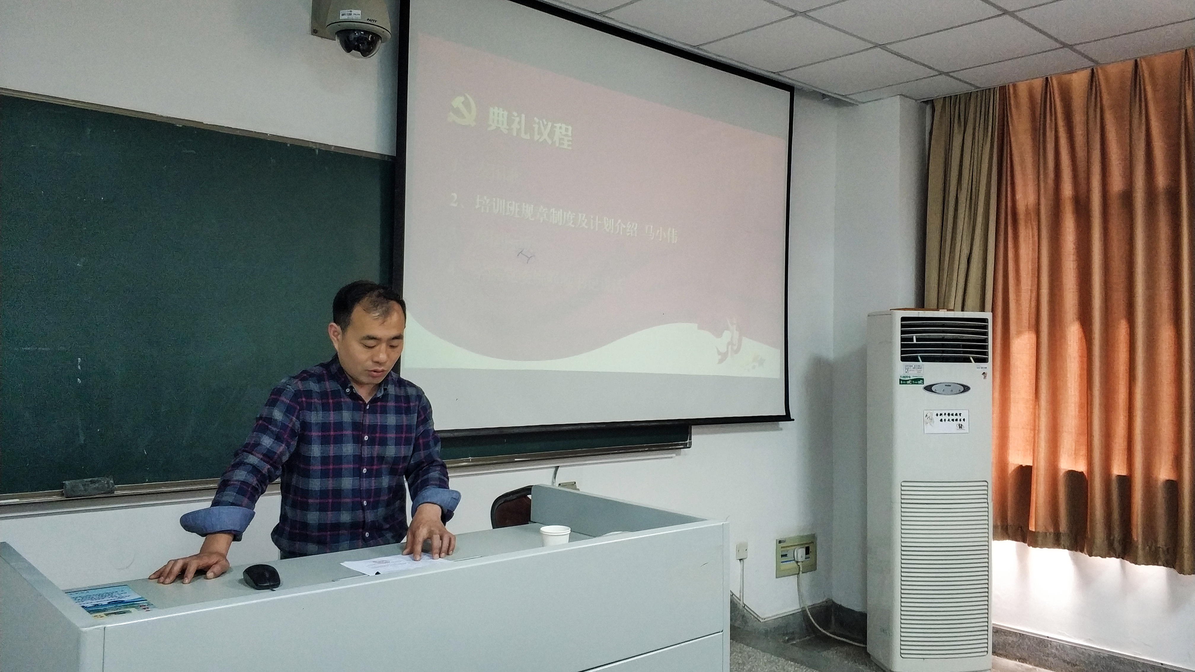 2019年4月17日,公司第三十四期入党积极分子培训班开学典礼在B11-105教室举行。公司党委姚峥嵘书记、员工第四党支部书记马小伟老师参加典礼。开学典礼由党校班主任余有任老师主持。