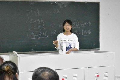 第二位是来自12药管的陈钰学姐。陈钰学姐针对药管专业毕业后能做什么以及在大学里怎样做才能对未来求学和工作是有帮助的这两个问题给出了一些看法。陈钰学姐认为药管专业毕业后主要可以从事四个方面的工作:考研、考公务员、医药代表和商业公司。学姐建议我们现阶段就要为之后的就业方向做出准备,提高自己的学习能力,同时也要参加各种活动,提升我们的语言表达能力。