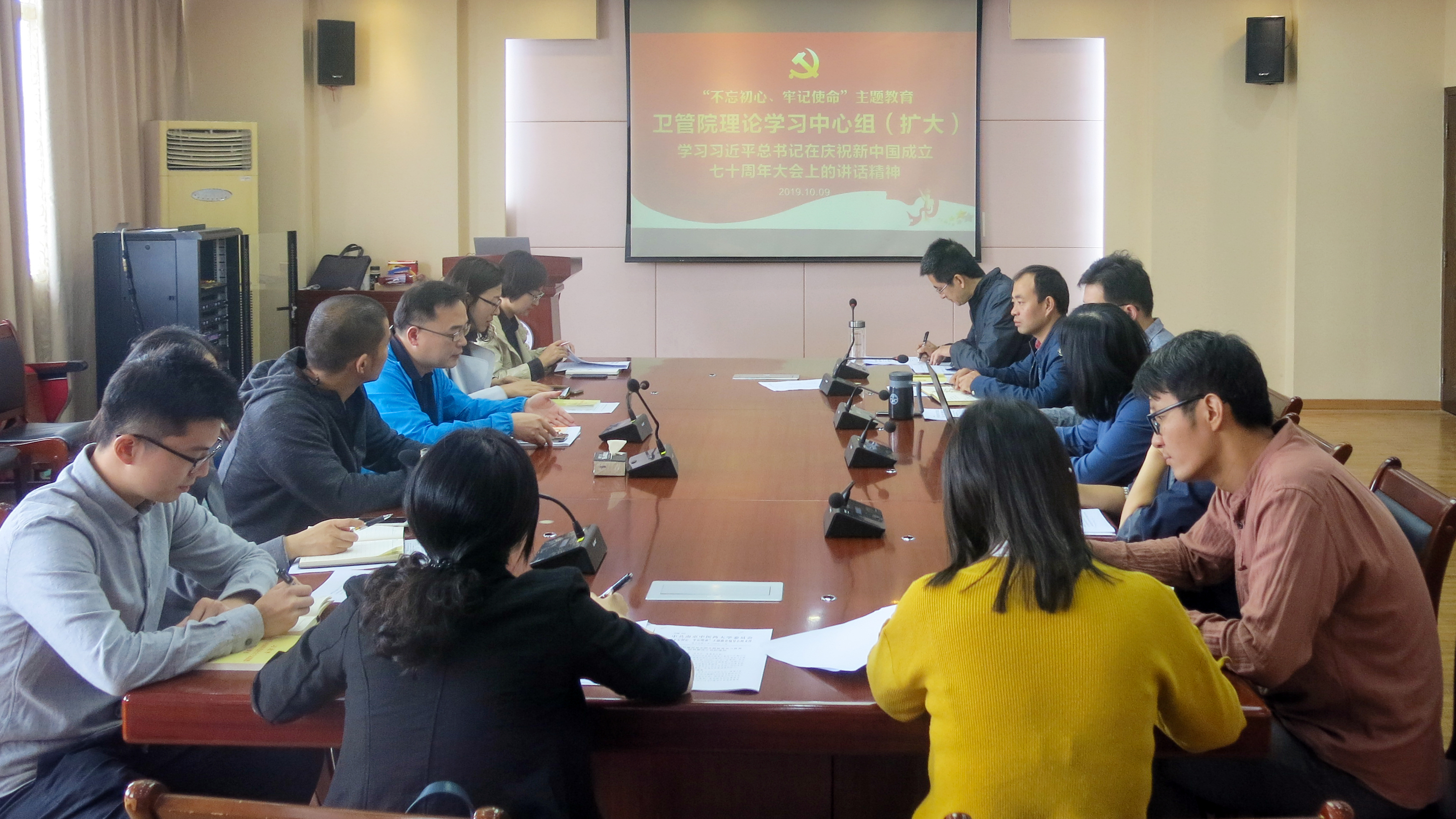 10月9日上午,公司党委理论学习中心组(扩大)开展集体学习研讨,深入学习习近平总书记在庆祝中华人民共和国成立70周年大会上的重要讲话精神。理论学习中心组成员以及公司各党支部书记、支委参加学习。