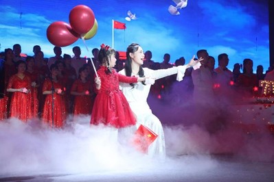 音乐伊始,在悠扬的伴奏中,小女孩天真的童声瞬间吸引了所有人的目光,那么美妙、那么婉转,用最烂漫无邪的方式表达着对祖国深深的爱意。