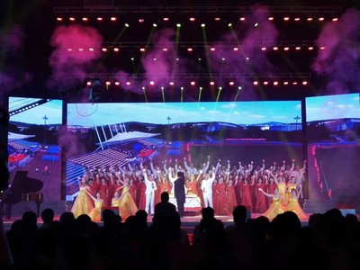 随着美妙的音乐缓缓响起,体育馆里歌声荡漾,宛转悠扬。只见舞台上红裙飘飘,白装倜傥,全体老师献上对伟大祖国最深情的祝福;黄星点点,舞姿曼妙,伴舞的同学们代表着时代最新的期望。