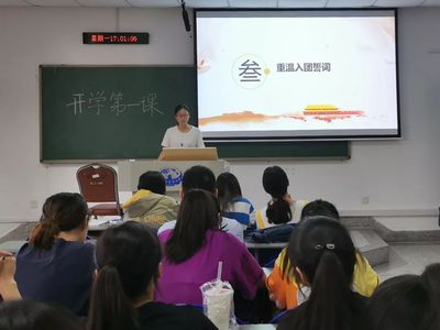 两位学姐分享完支教故事后,全体起立,由主持人带领大家重温入团誓词,本次活动也在大家庄严的宣誓中达到了高潮。一字一句、铿锵有力。一字一句,发自内心。青年们充满朝气的誓言在教室里传开,带着坚定与憧憬,传向窗外,传向远山。