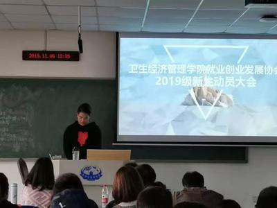 2019年11月6日中午在B11-112williamhill就业创业发展协会举办了本学期的第一次大例会新生动员大会。本次大会由理事长助理黄淳崧主持,期间指导老师魏翠妮、理事会及各部门部长都带来了精彩的介绍与分享,使全体新生更快地融入到了协会,增强了社团发展的巨大潜力。
