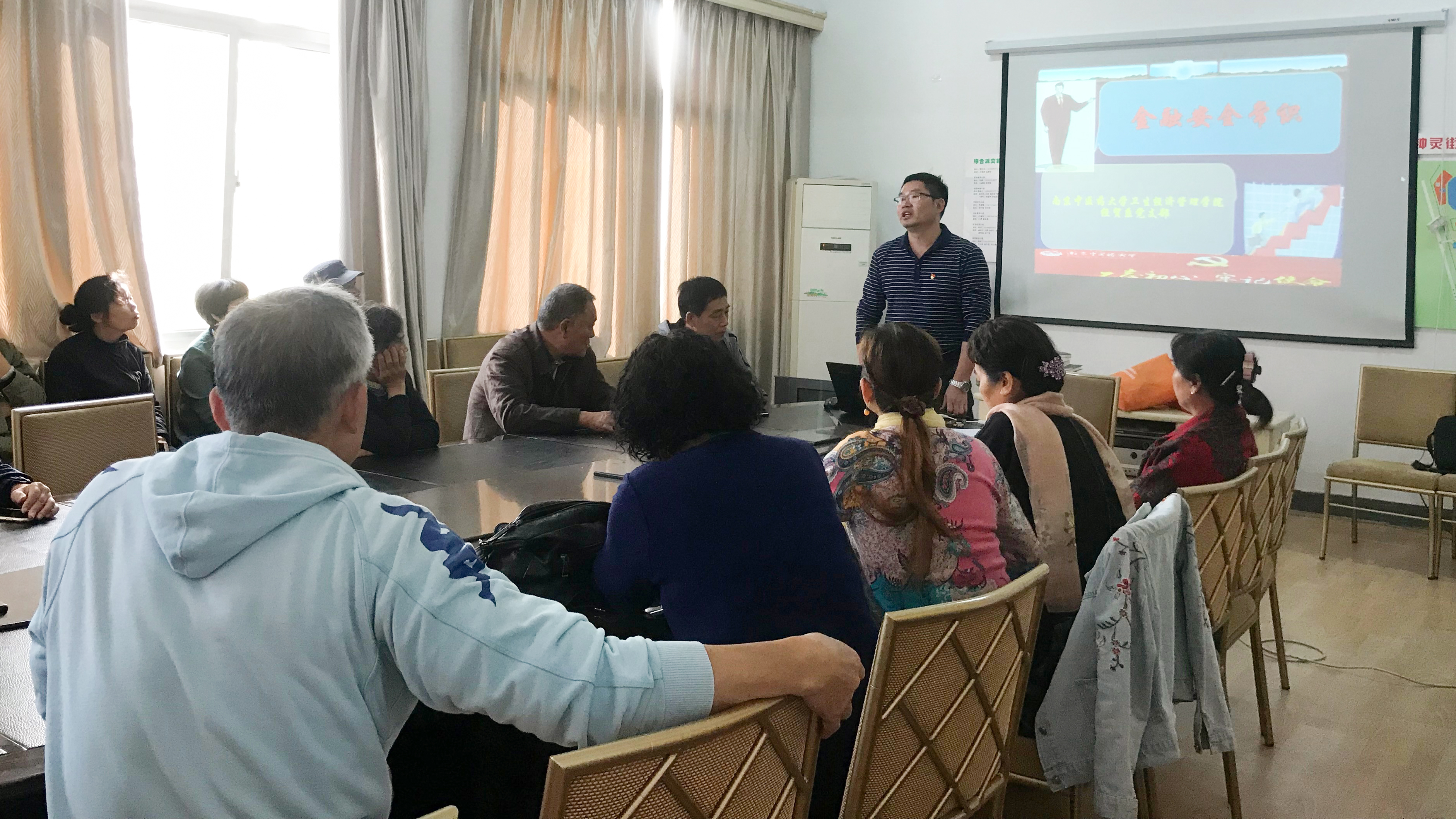 10月30日下午,公司经贸系党支部全体党员在支部书记李洁副教授的带领下,来到孝陵卫街道钟灵街社区,开展主题教育党日活动。
