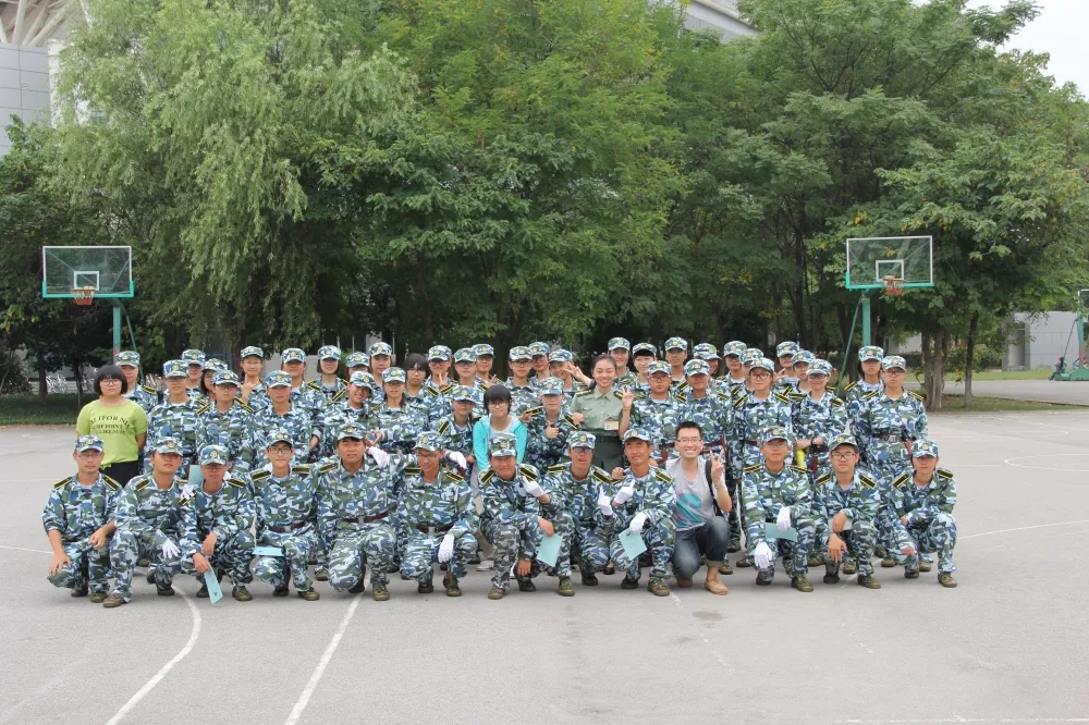 2015级新生军训时,白老师和员工在一起