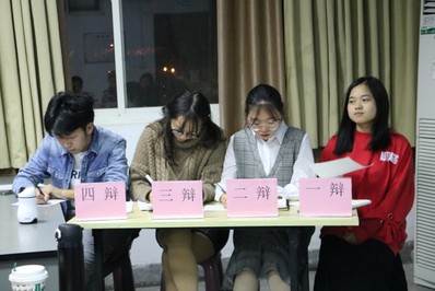 本次辩论赛邀请了辩论队辩手邱玺瑞、孙璞和蒋孟担任评委。共6支队伍参与比赛,两两对决。三组选手分别围绕“网络热词是否有利于语言发展”这一论题展开辩论。