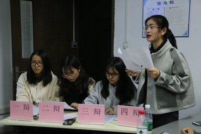 本次辩论赛邀请了辩论队辩手邱玺瑞、孙璞和蒋孟担任评委。共6支队伍参与比赛,两两对决。三组选手分别围绕“网络热词是否有利于语言发展”这一论题展开辩论。