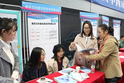 在众多的用人单位中,有一部分特别吸引在场师生的眼球,他们有一个共同的身份:院友。他们或者毕业后创立自己公司或者毕业后在某公司工作,如常州伟仕国际贸易有限公司的卢俊,湖北威尔曼制药股份有限公司的曹玉娟、南京艾科曼信息技术有限公司的周汇汇和许香梅,妖精的口袋公司的孙倩雯等。 招聘季到来时,他们脑子里首先出现就是母校的学弟学妹。