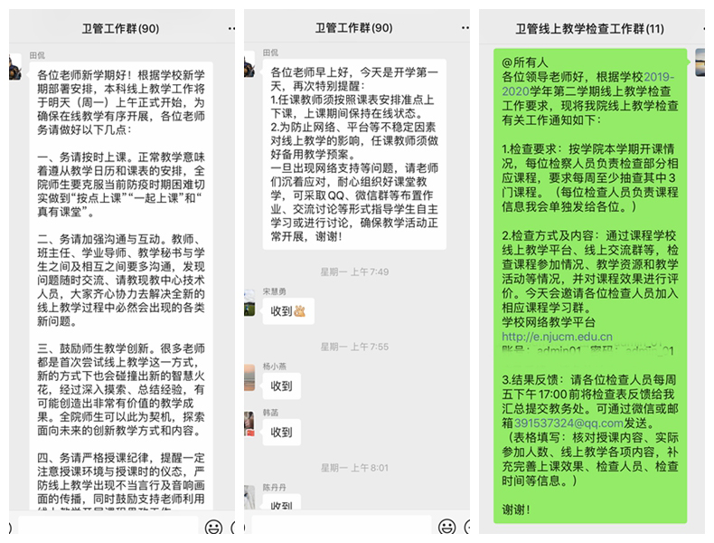 为了保证在线教学工作的有序开展,公司按照教务处要求严格构建了“公司领导、教学督导、任课教师、学业指导老师、辅导员”五位一体助学团队,分工负责,全面指导、督查开学后线上各项教学环节的落实情况,为保证新的教学形式切实有效地开展,还要求任课老师们做好线上教学的应急预案。
