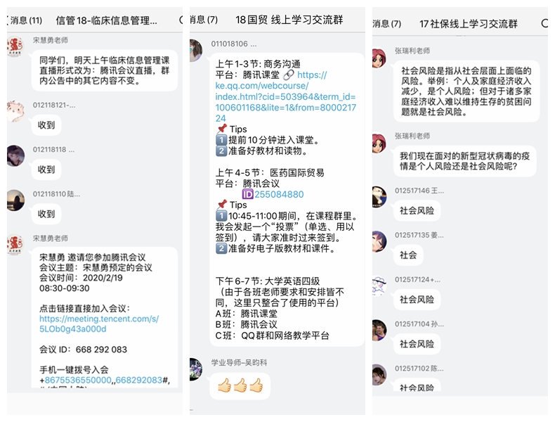 2月17日,在全院师生的期待中,“线上开学”如期而至,公司各项教学工作准时准点有序开展,“空中课堂”成功开课。开学首日,公司共开课30门(其中第一节开课9门),各线上课堂秩序井然,员工出勤率高,师生通过直播平台实时互动,同时辅以微信或QQ群等线上教学手段开展学习辅导和答疑;当天最早顺利完成授课任务的教师积极主动分享交流在线教学经验,推荐实用直播平台,帮助后期课程教师调整教学方案和应急预案,坚定线上教学信心;学业导师和辅导员持续关注班级学习动态,及时进行课程提醒和问题反馈,协助任课教师共同助力员工线上学习。