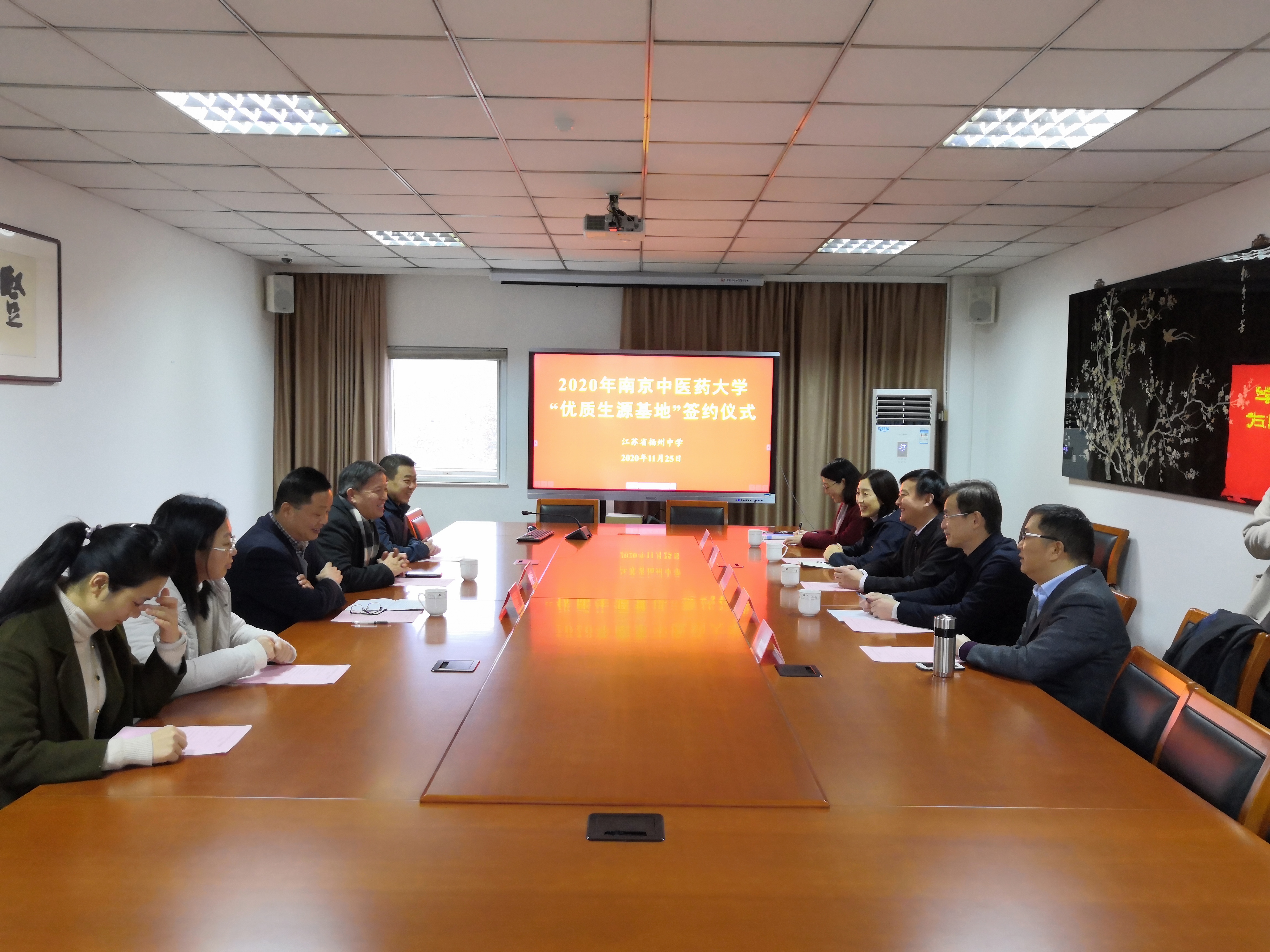 11月25日,公司党委程纯书记、刘晓常委等一行赴江苏省扬州中学开展优质生源基地创建活动。江苏省扬州中学董事长严济良、纪委书记章轶群及高三年级教师代表出席了签约仪式,签约仪式由章轶群主持。