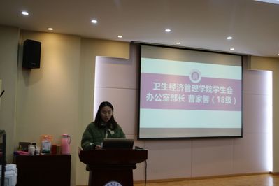 办公室部长曹家馨回忆了在这繁杂而充实的一年里办公室始终秉承诚恳务实的工作作风,在人事工作、财务管理、物资管理、档案管理等方面进行了综合性管理。她认为办公室的工作效率仍然可以进一步提高,在他们的帮助下,员工会的明天一定会更加美好。