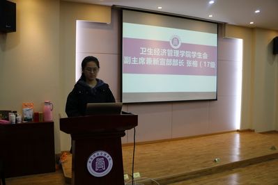 文体部部长石默岩将汇报分为两个部分。上半年,文体部通过多个app的合作积极进行线上活动,丰富了同学们疫情期间的文体生活;下半年运动会方阵、各项比赛均获得成功,为更多同学提供了展示自我的舞台。文体将总结经验和教训,对工作进行更加详尽规划,通过更多途径丰富校园文化生活。