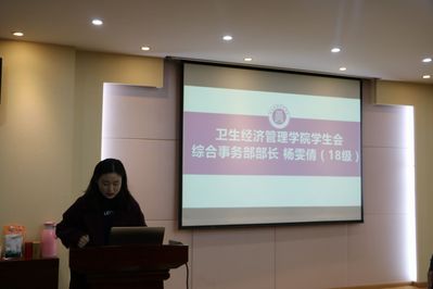 综合事务部部长杨雯倩表示,时光飞逝,岁月如梭,这已经是她在员工会度过的第三年。今年综合事务部配合学风创新部进行学风建设活动并促进宿舍形成良好氛围。她感谢了繁忙工作中有这样一支合拍团队以及积极创新、开拓探索的副部的陪伴,综合将继续丰富课余生活,活跃校园气氛,进一步总结自我、提升自我。