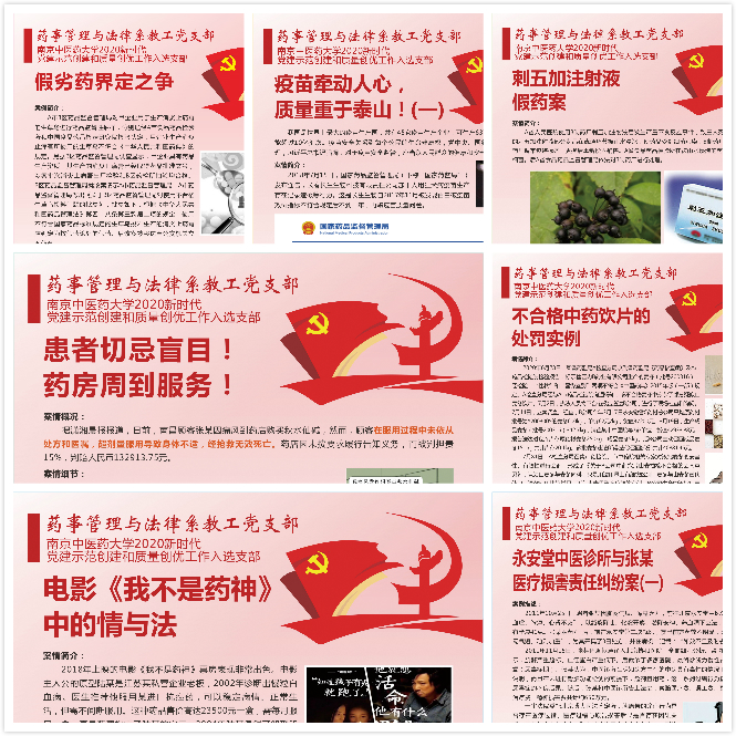 本次党日活动自12月1日起通过线上线下结合的形式开展。线上通过在药事管理与法律系公众号、南中医williamhill公众号连续发布多篇案例文章,广泛宣传;线下在校敬文图书馆放置宣传展板。
