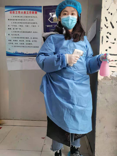 17国贸的杨钰瑶,在江苏省南京市溧水区洪蓝镇农贸市场参与防疫工作,累计志愿服务时长达25小时。她主要在市场入口进行进出人员登记、体温测量和消毒工作。农贸市场人流量大,疫情防控工作繁重,一刻也不能松懈。通过此次志愿工作,她认识到疫情防控是每个人应当尽的责任,不仅志愿者要以身作则,普通居民也需时刻谨记,新冠疫情国际形势仍然严峻,做好防护,是对自己负责,也是对他人负责。