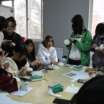 当天下午两点,同学们齐聚为祭奠活动制作纸花。大家围坐在一起,用纸巾、胶带等工具手工制作出一朵朵圣洁的纸花。同学们专心致志,裁剪、折叠、小心翼翼翻折花瓣,每个步骤都认真细致。一朵朵小纸花凝聚着大家对先烈的缅怀之情、悼念之意。