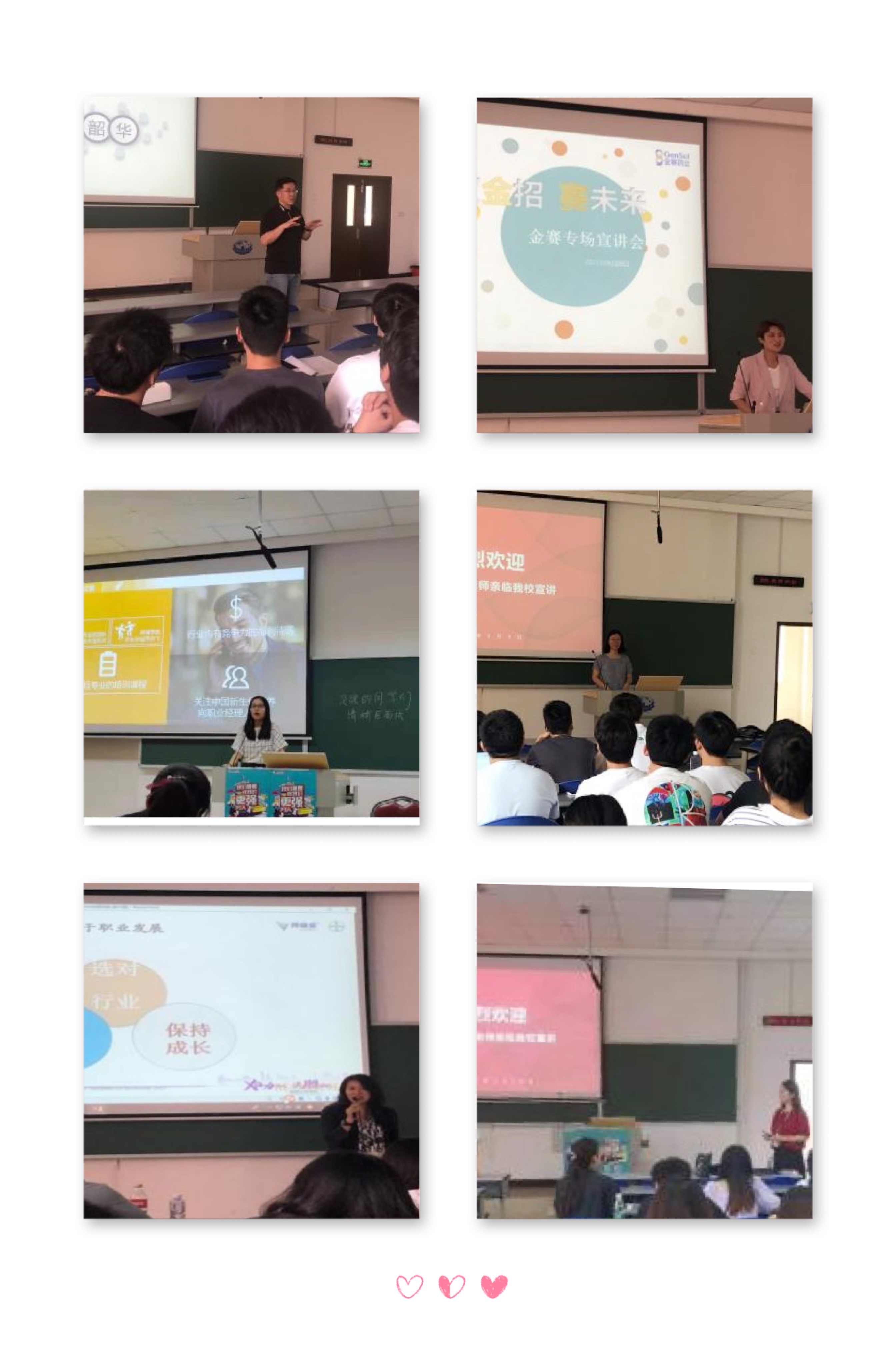 四家企业均从企业文化、产品、人员培养以及工资薪酬等方面介绍自身企业的基本情况,并邀请部分在企成长的优秀毕业生代表郑伟民(2006届,先声药业宣讲会负责人),史法予(2006届,金赛药业销售经理),姜天裕(2020届,金赛药业优秀员工)。她们结合自身成长经历,为学弟学妹们进行职业规划,并提出发展建议。