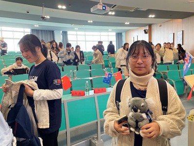 2021级公管专业新生代表纪秋妍同学用全英文发言,表达了对南中医和斯威本两所大学的感谢,并对未来的职工活和人生阶段进行了展望,表示大学期间会努力学习,不负公司及家人们的期待。