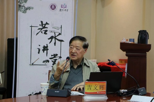 随后,吉文辉教授分别从老子论“水”之“八善”和孔子论“水”之“九德”两个角度深入浅出地剖析了“水”在儒道文化中的异同,并与现场师生积极互动。