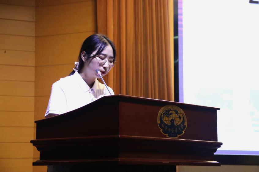 22公管2班沈雨菲同学作为本科新生代表,作了题为《奋斗是青春最亮丽的底色》的发言。她勉励同学们树立目标,踏实学习,积极上进,追寻上善若水、至精至诚的人生境界,以奋斗之心点亮美好青春,以青春之心成就辉煌中国,争做为时代、为党和祖国贡献力量的新时代卫管人!