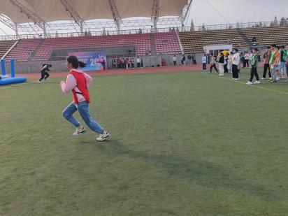 然后是趣味闯关,比赛设置在操场草坪上,参赛选手通过重重阻碍,有跳过障碍的,有绕过障碍的,最后闯关成功,顺利到达终点。同学们展现出的青春活力,感染着现场的每一个观众。