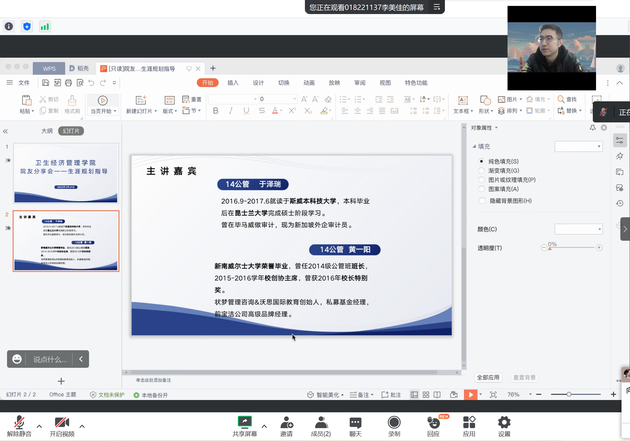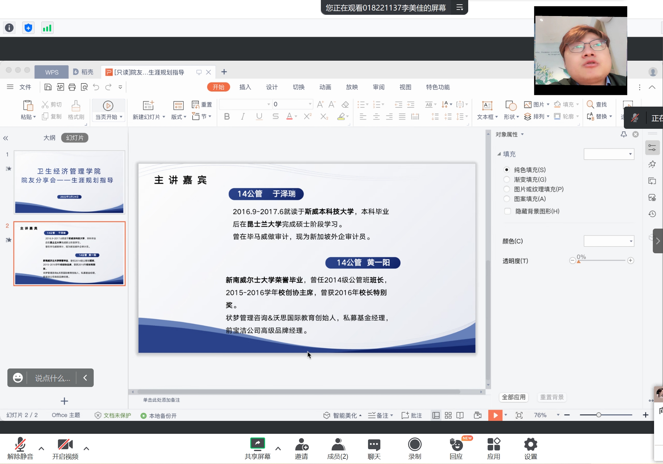 为解答同学们当前对专业与未来发展上的困惑,williamhill召开了“生涯规划指导”专题院友分享会,为22级、20级公管专业同学开展了学业发展与职业生涯规划的指导。会议特别邀请到毕业于公司14级公管专业的于泽瑞、黄一阳两位同学,就学业规划、出国留学和求职准备等方面为学弟学妹们作出了分享与建议。14公管辅导员蔡亮老师、22公管1班辅导员左桂老师、22公管2班辅导员闫思盟老师出席本次会议。会议由22公管1班长林索赜同学主持。