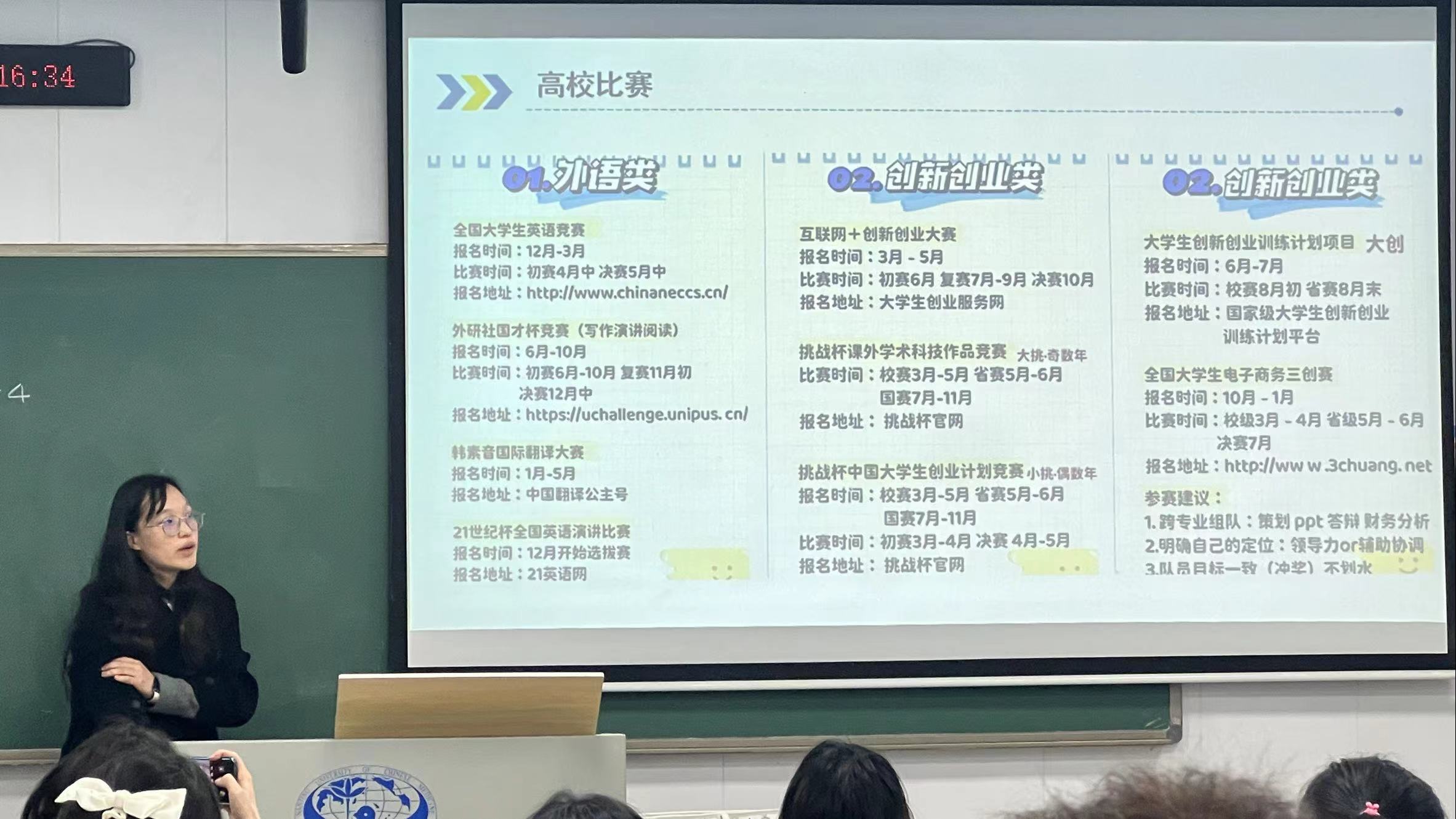 在学情分析的基础上,学业指导老师是沁老师帮助21信管的同学们梳理了大学四年各阶段的发展规划、本专业的核心期刊等内容,鼓励同学们积极参加各类各项竞赛,以赛促学,以学促练。