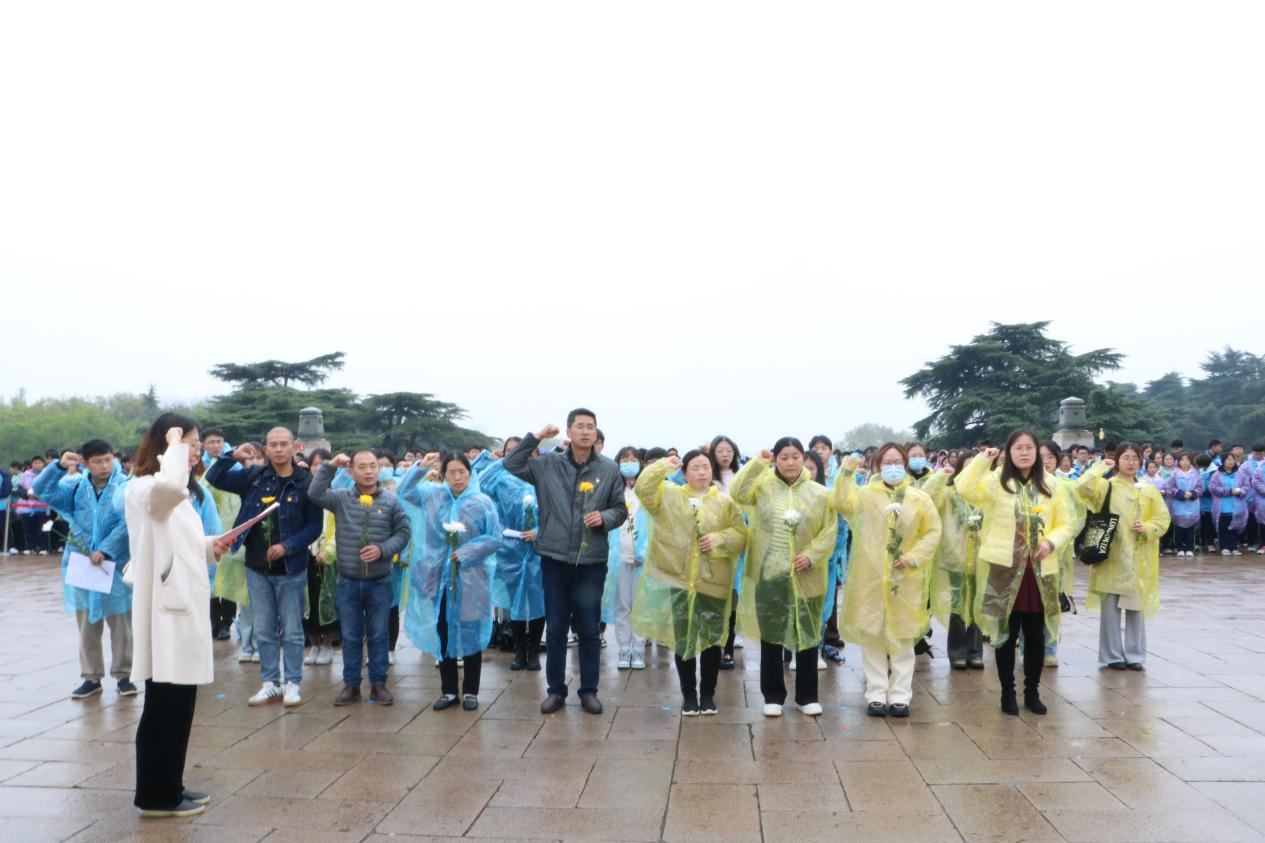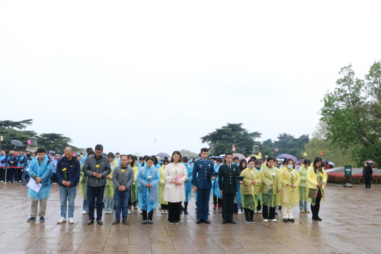 细雨绵绵,衬托着烈士陵园更显肃穆。烈士纪念碑巍峨高耸,“宁死不屈”的革命烈士塑像象征着革命烈士视死如归、不屈不挠的大无畏精神。活动伊始,全体师生默哀,缅怀先烈,寄托哀思。