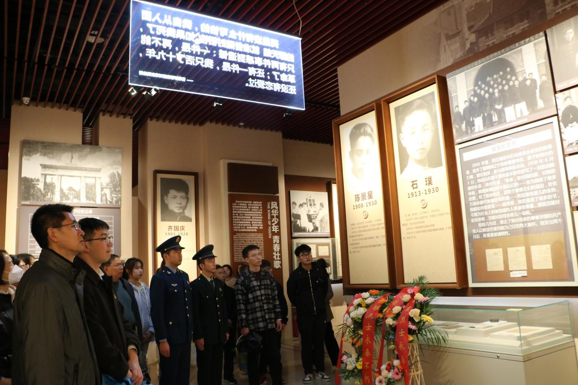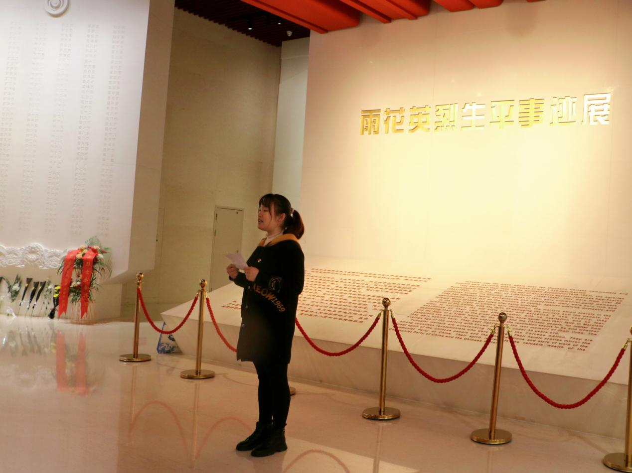 随后,同学们走进雨花台烈士陵园,认真聆听着讲解员对雨花英烈事迹的详细介绍。大家沿着先烈们的足迹,重拾那段风雨如晦的历史,回看革命烈士英勇而又壮烈的人生,深刻体会到共产党人的崇高理想信念、高尚的道德情操和为民牺牲的大无畏精神。馆内共陈列有620件烈士遗物、450幅珍贵图片和恽代英、邓中夏等128位烈士的事迹和文献资料。当看到一张张神情稚嫩却又充满坚毅的烈士照片,同学们为革命志士们视死如归、不屈不挠的大无畏精神所感染、震撼着,敬佩之情油然而生。