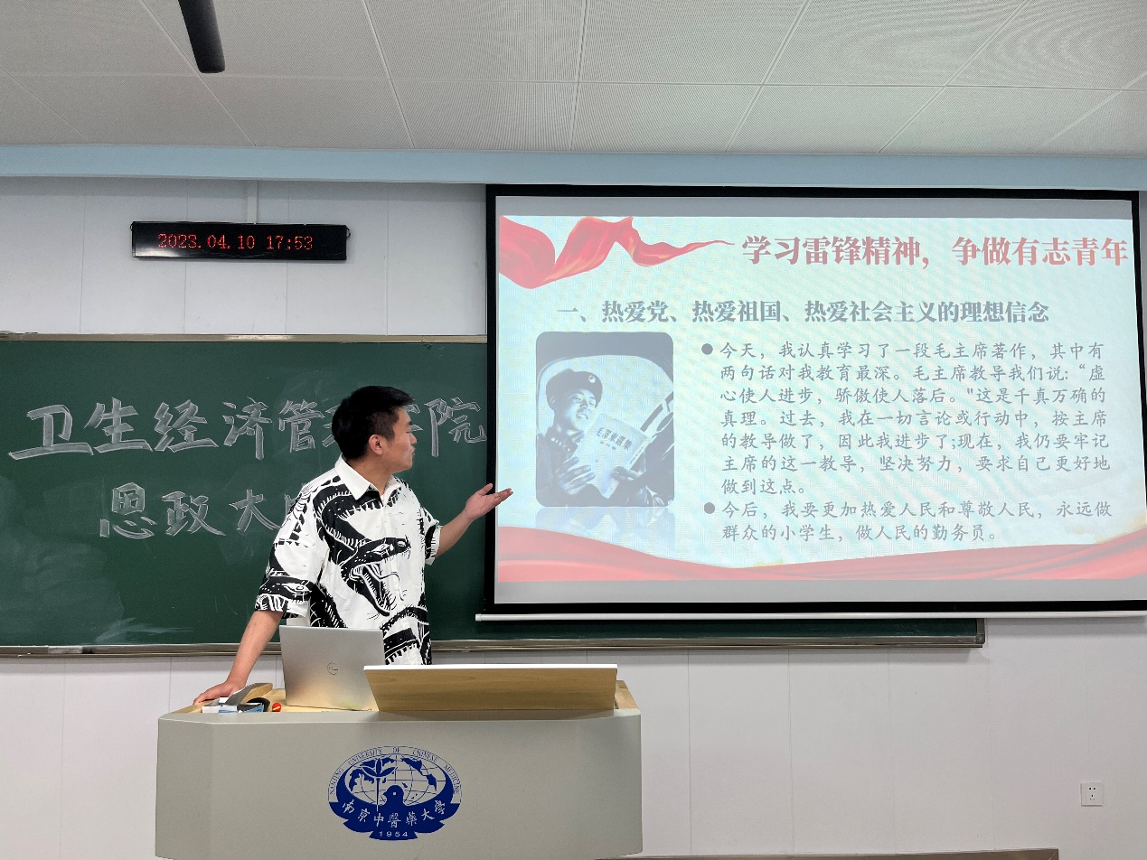 市场营销2020级团支书许云灏同学以“春风送暖,上善育人”为主题,通过讲述一个个雷锋同志的事迹,展现舍小我的无私奉献精神和忠于党国社会的家国情怀,呼吁青年学子学习、传承和弘扬雷锋精神、服务广大人民,到祖国和人民最需要的地方去建功立业。