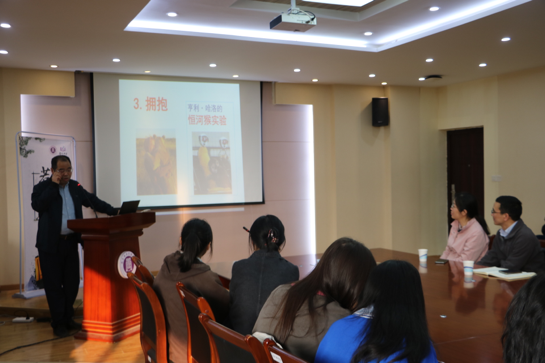 首先,由本次活动的主持人彭怀佳同学为大家介绍了王安老师。在热烈的掌声中,王安老师提出了第七讲的主题——如何提升幸福力,并从什么是幸福、为什么要幸福、如何能够更幸福三个方面进行讲解。