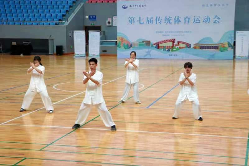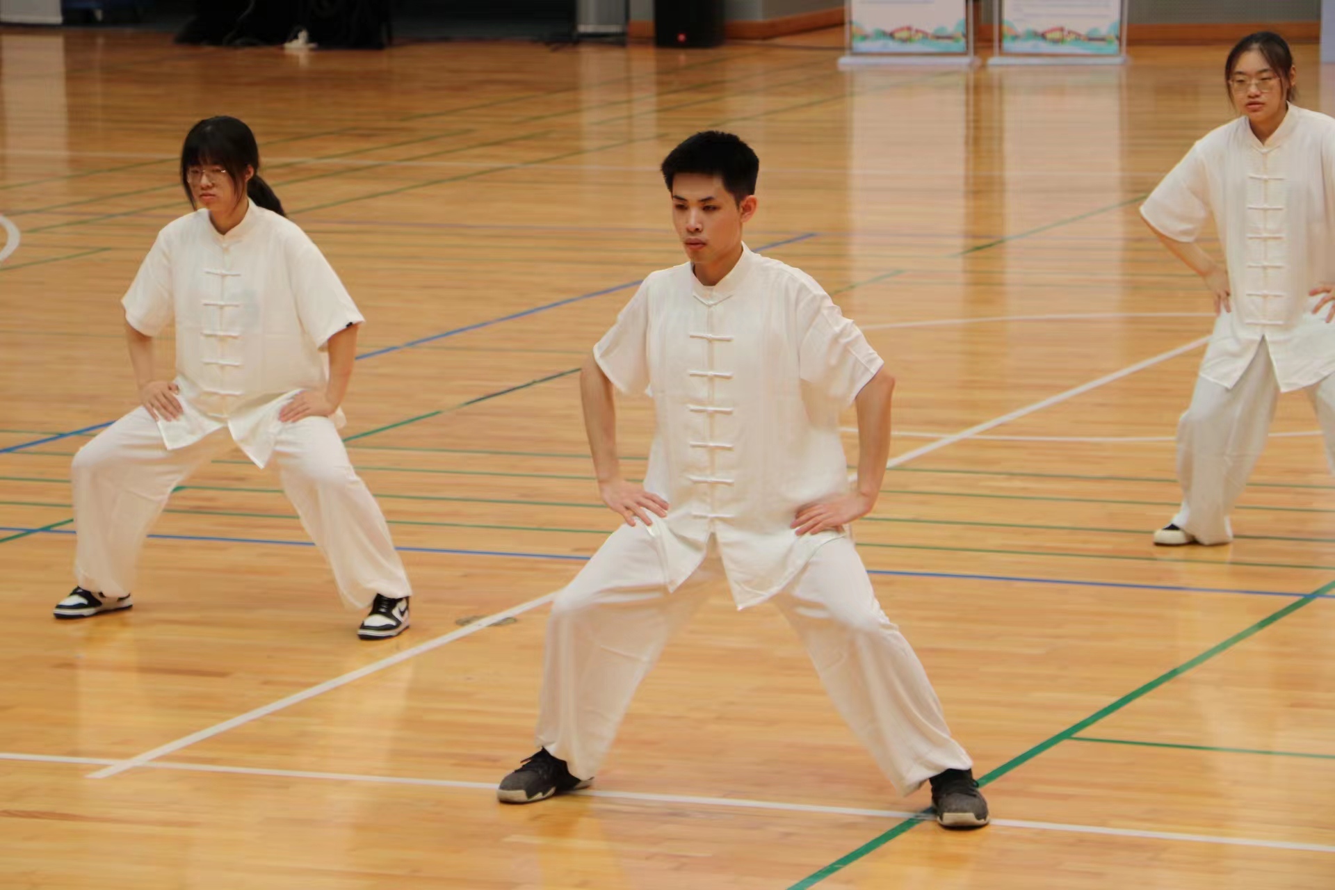 首先进行的是太极拳比赛,同学们排好队形,井然有序地站定。“起式……”,随着音乐响起,同学们整齐划一地开始变换姿势。所有人动作流畅、一气呵成,刚柔并济、张弛有度,举手投足之间尽显太极拳的独特力量与韵味。