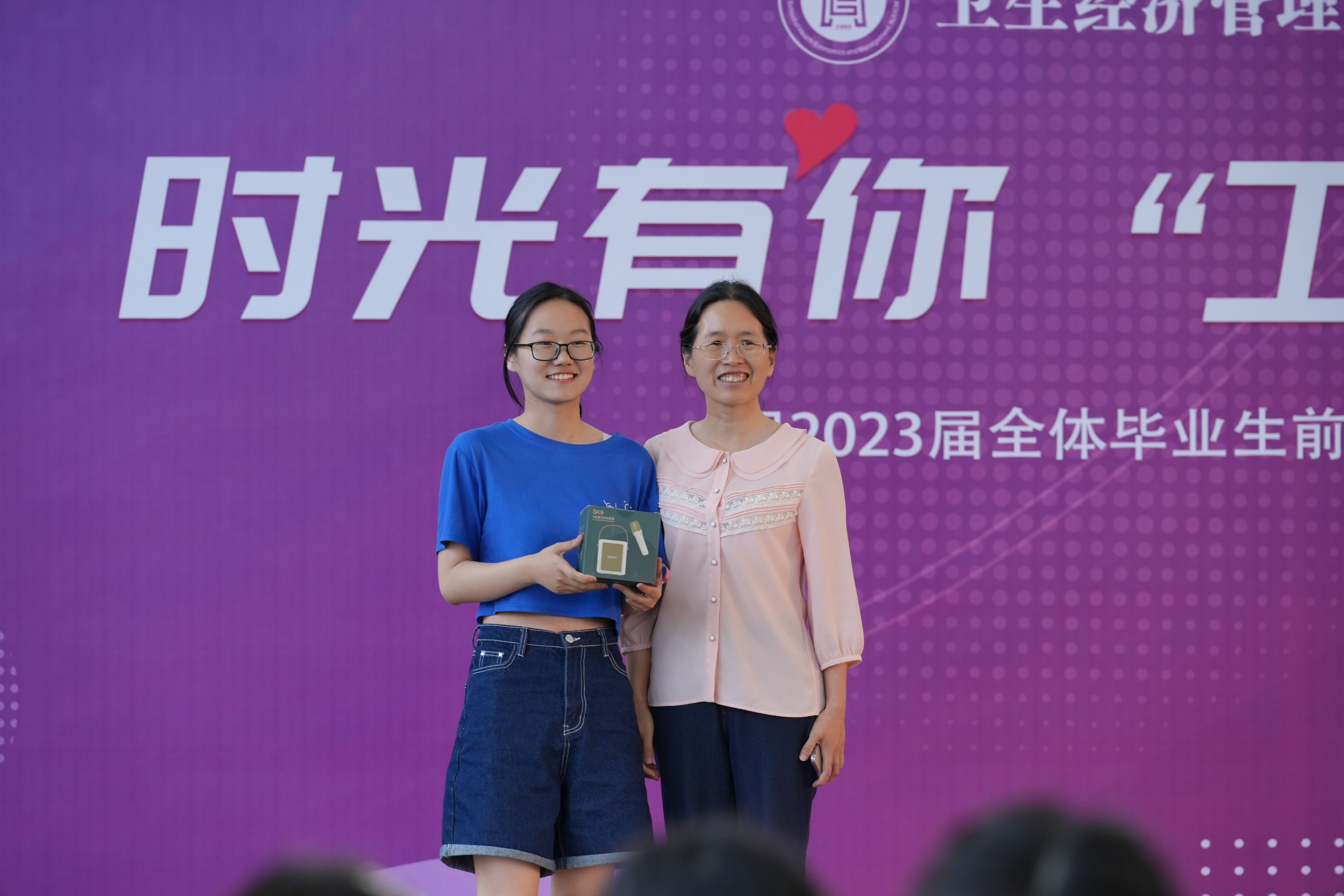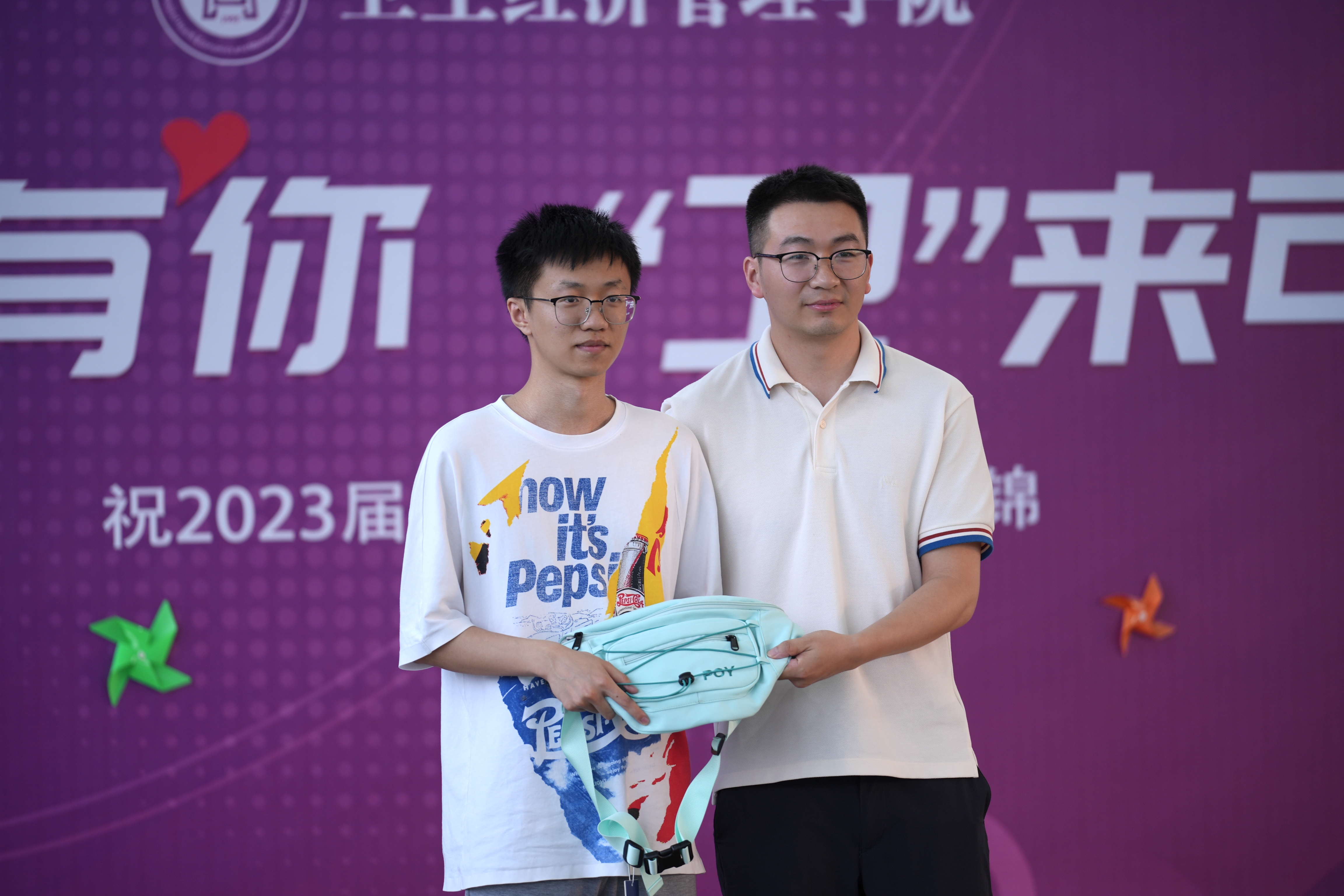 万众期待的抽奖环节中,毕业班辅导员蔡亮老师、闫壮壮老师、刘红艳老师为大家揭晓了幸运号码牌,“幸运儿”带着激动的心情上台领奖,并与老师们合影留念。