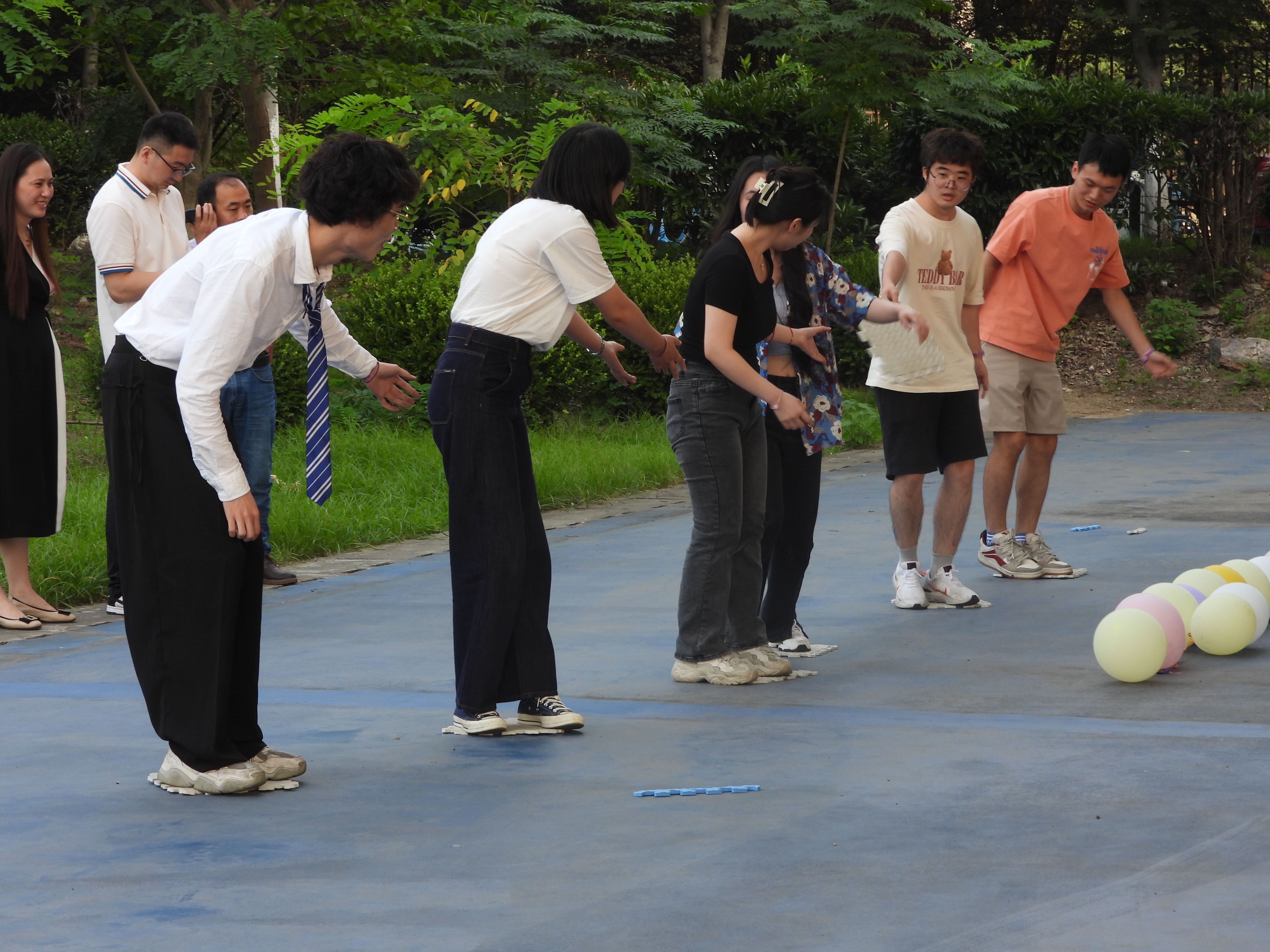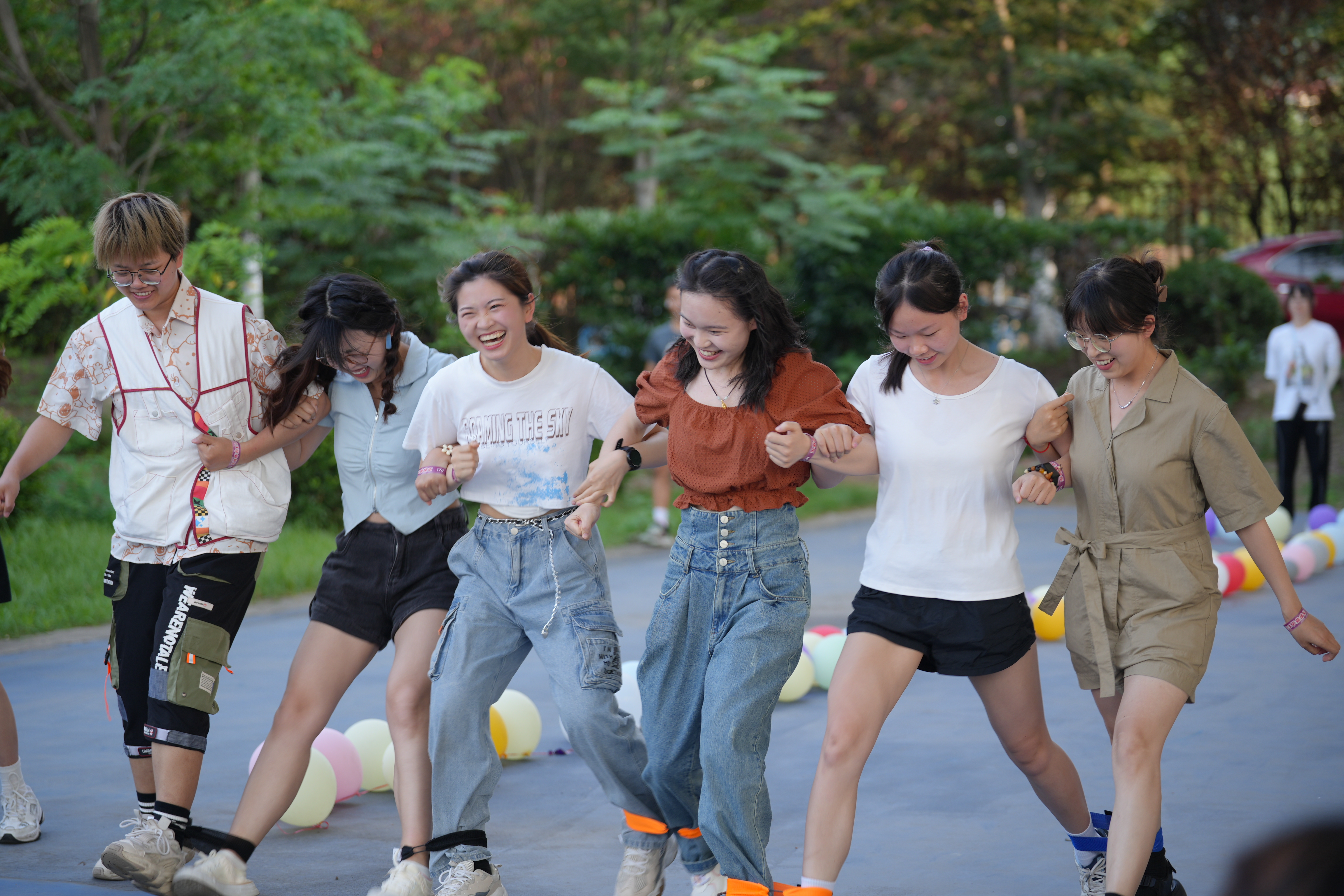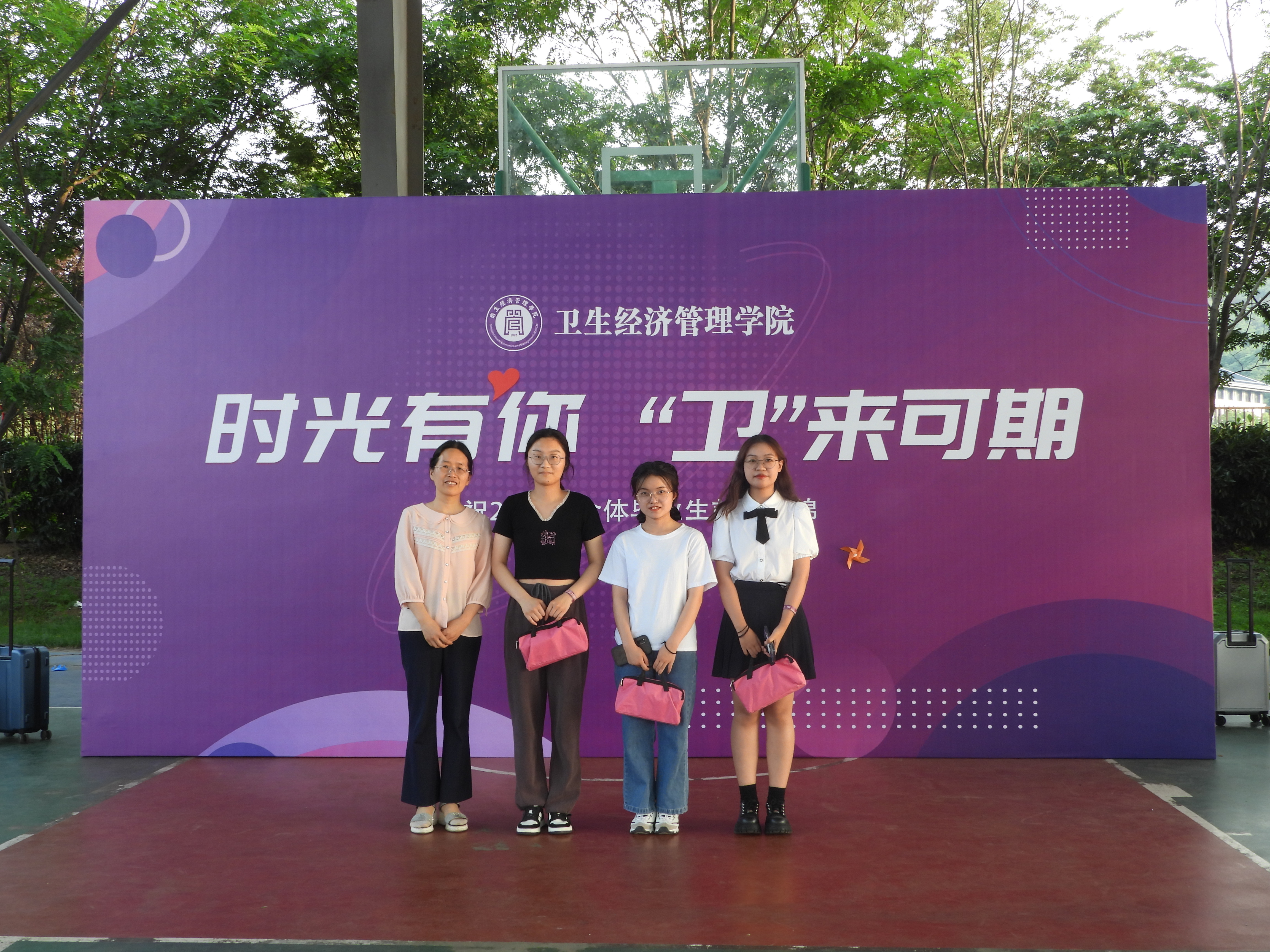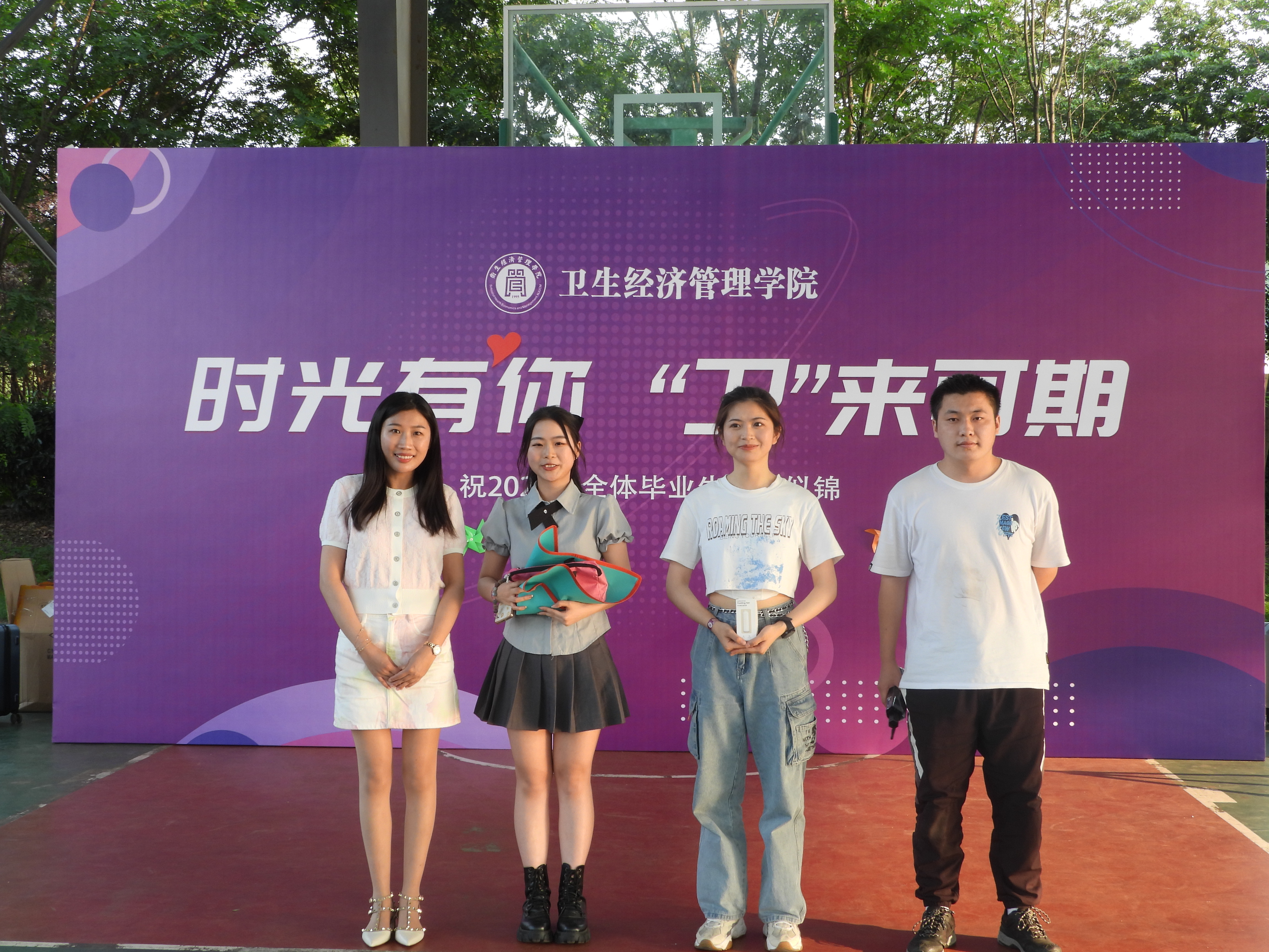 紧接着的趣味运动会将本场联欢活动的气氛值拉满。毕业生们先是齐心协力进行“六人七足”的比赛,6名同学并排站立,每一个人的左腿与相邻人的右腿用绳子绑住后通过团结协作共同前进。经过激烈的比拼,19药管、19公管1和19营销三个班级最终获胜,学工办主任刘红艳老师为获奖班级代表颁奖并合影留念。