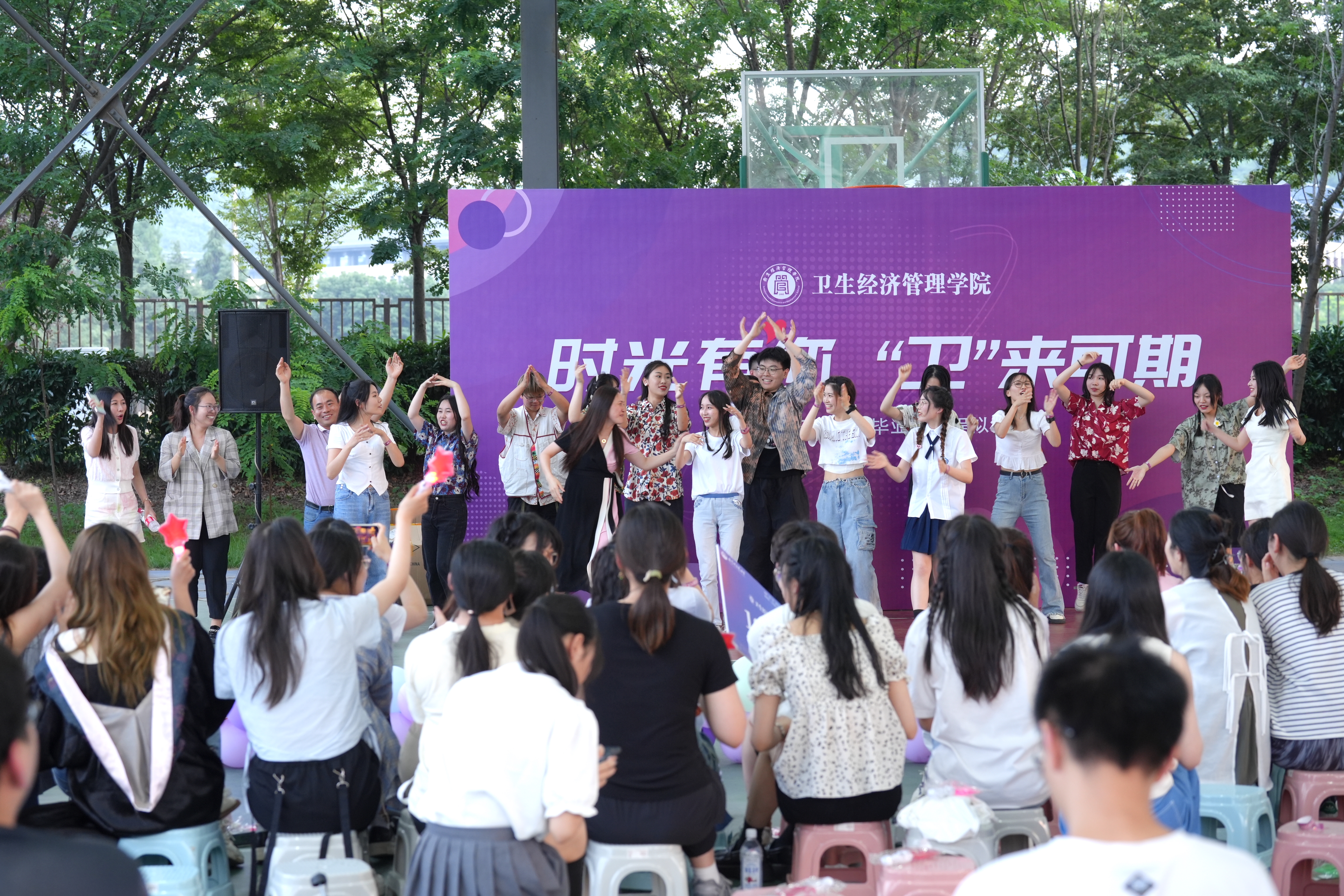 趣味运动会过后,19公管1高榈与薛彦同学、22信管李润东同学带来歌曲串烧《突然好想你》《小酒窝》《凤凰花开的路口》,感慨同窗友情的真挚,留恋青葱爱情的甜蜜,诉说离别之际的不舍。接着,为班级辛勤付出、为同学热情服务的毕业班班长和团支书为大家精心准备了舞蹈串烧,希望在毕业之际为同学们带来欢乐与祝福。观众席的同学们随着韵律舞动起来,台上台下,精彩不断。