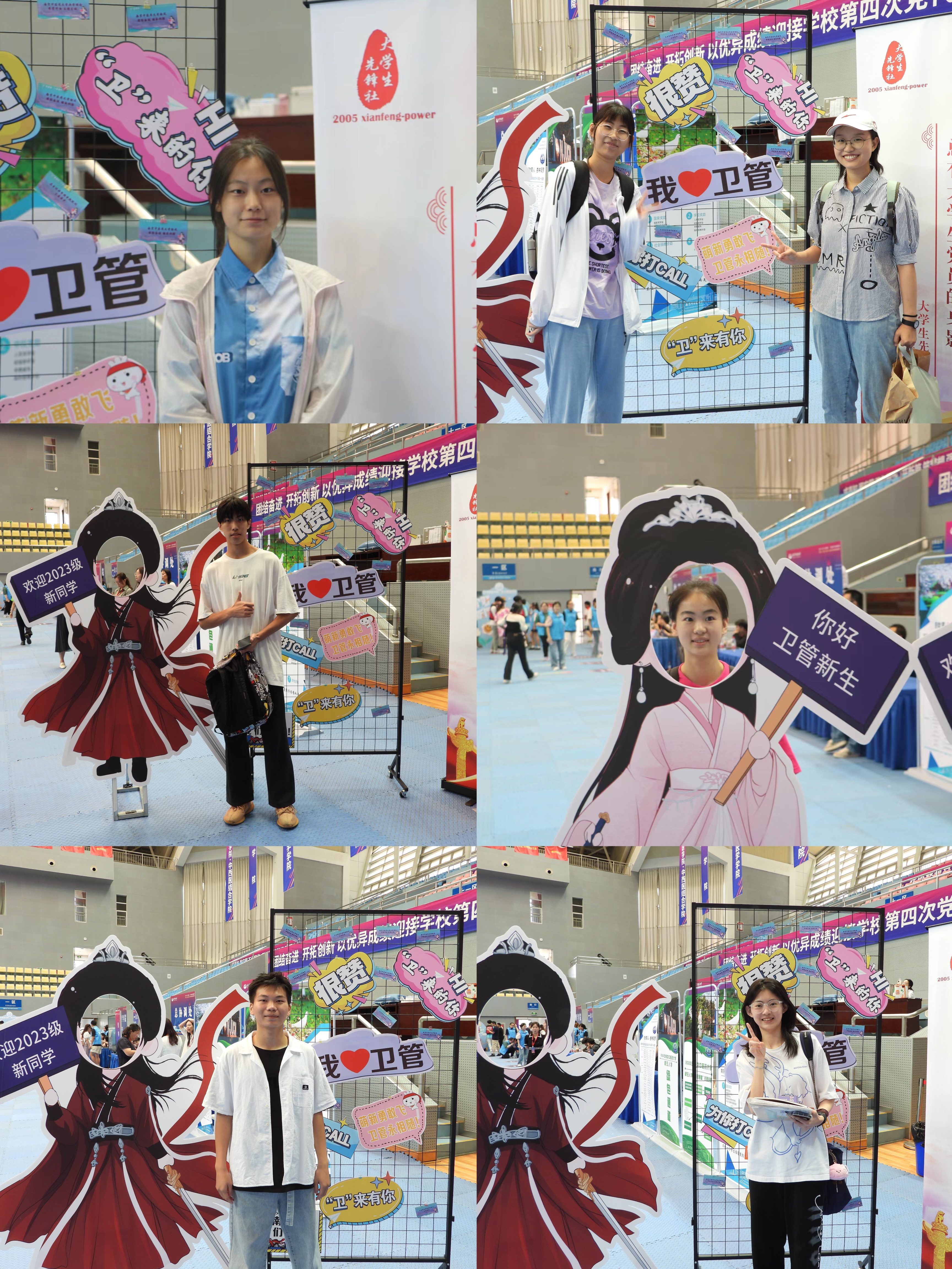 在完成报到和领取开学礼物后,萌新们纷纷在“‘卫’”来有你”拍照打卡区和暑假热播剧《莲花楼》男女主人形立牌区合影留念,镜头记录下这一初次相遇的美好时刻,青涩稚嫩的笑容感染着所有人,让同学们在报到现场收获了满满的仪式感和幸福感。