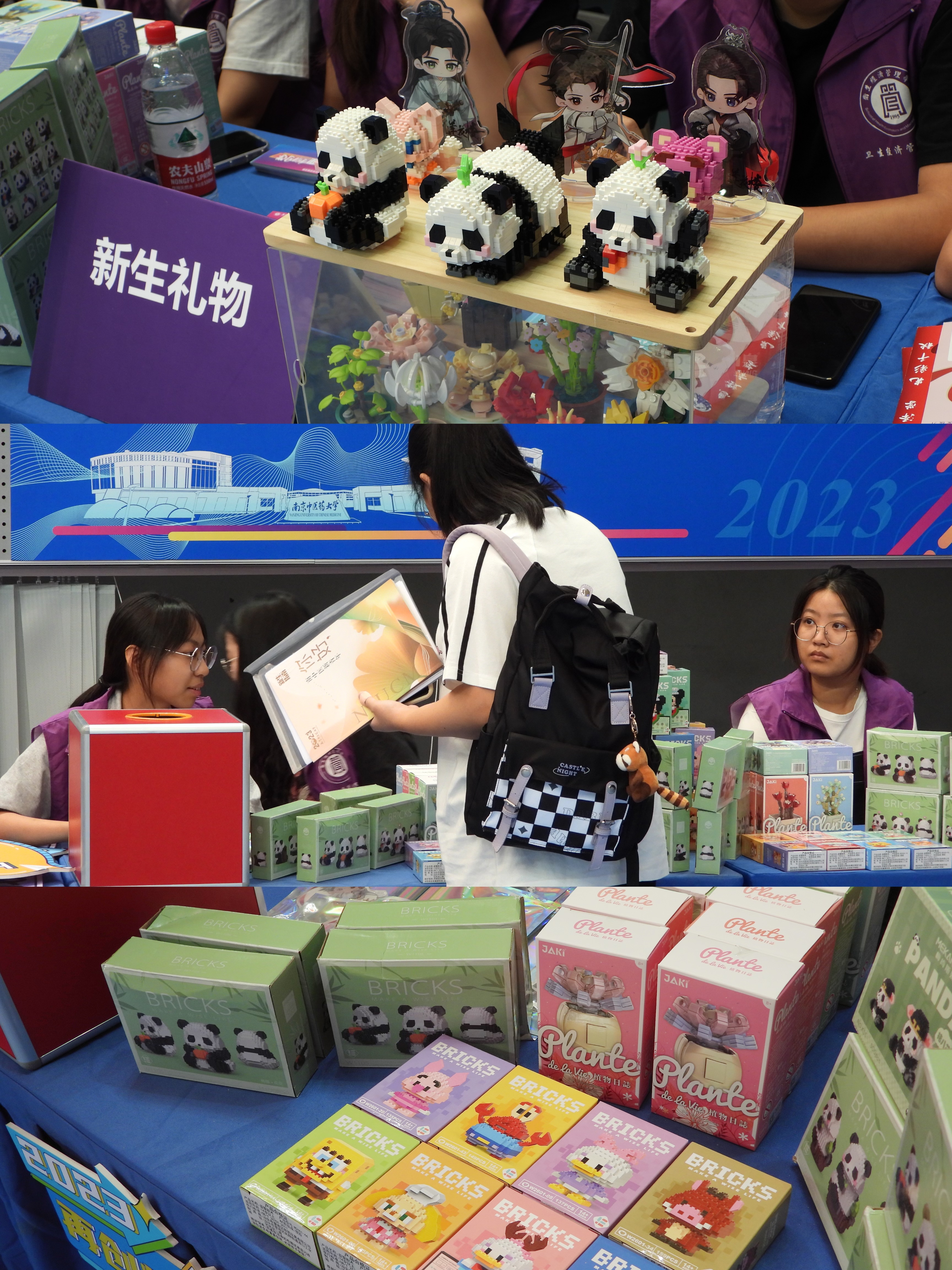 萌新们有序完成报到后领取了印有校风、校训、院训的定制手牌和充满乐趣的盲盒礼物,沉浸式的校园文化体验和惊喜满满的开学礼物为现场增添了欢声笑语。盲盒礼包里的卡通立牌、熊猫花花、积木盆栽和动漫人物将见证大家未来四年的成长与收获,陪伴同学们一起探索属于自己的“快乐星球”。