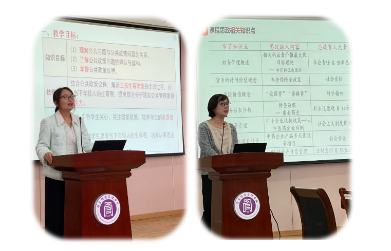 本次工作坊采取公开示教课展示后进行交流沙龙的参与式培训方式,杜启霞、孙文婷两位老师分别围绕《公共政策学》《财务管理》进行讲授与说课。刘跃光教授和谈献和教授进行点评,并给出指导性建议。