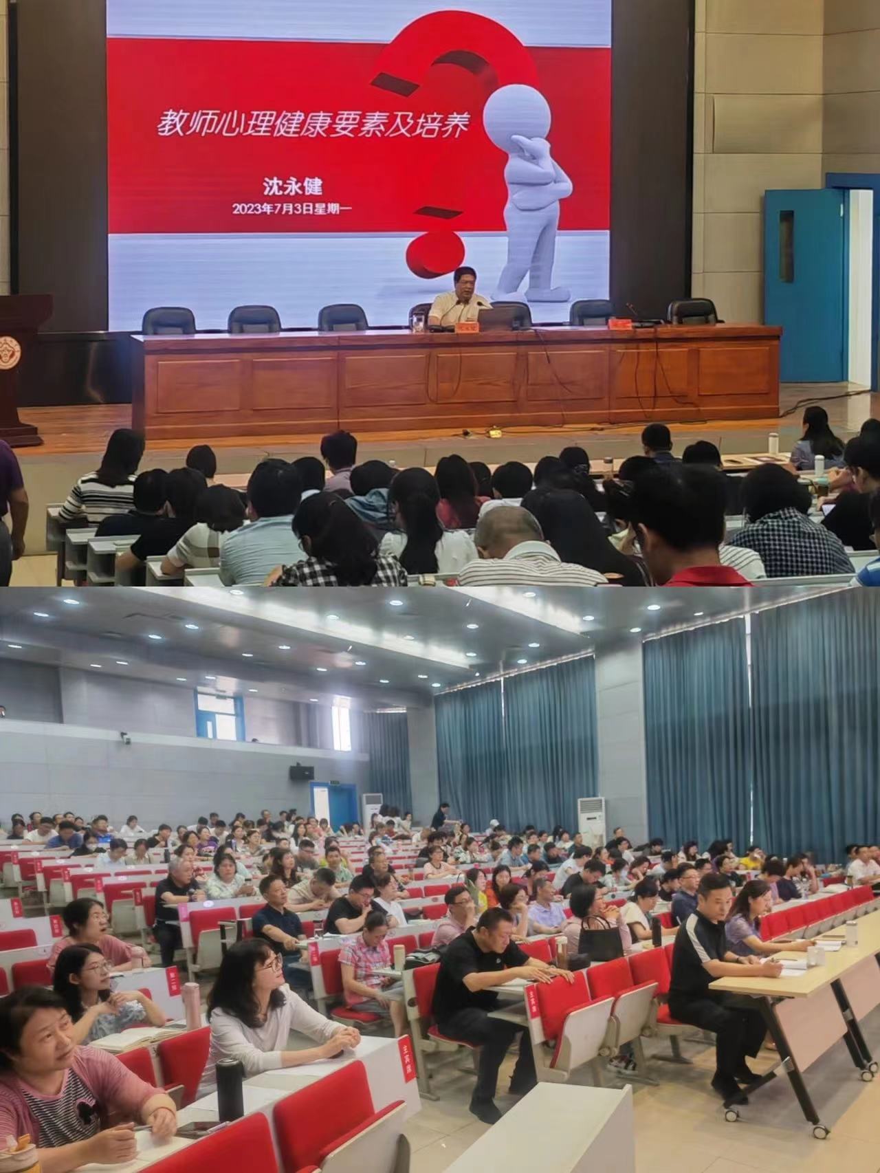 为加强与优质生源基地的互动,促进公司与优质中学的联系,受扬州中学邀请,7月3日,公司沈永健副教授在扬州中学开展“教师心理健康要素及培养”讲座。沈教授从教师心理健康标准;教师如何保持健康、稳定的情绪状态;如何缓解压力与焦虑等方面进行讲解,讲座受到扬中老师的热烈欢迎。
