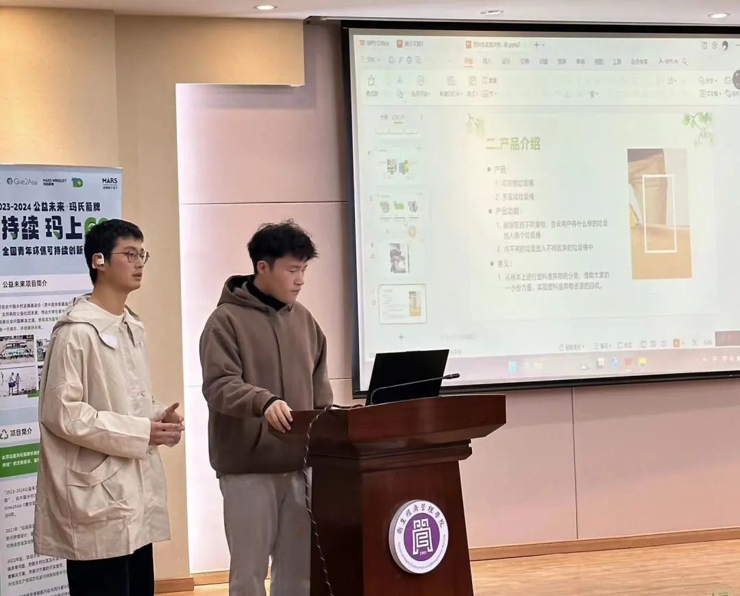 “开心果”队进行团队项目讲解,他们利用扫描型废物回收及区块垃圾桶将塑料包装废弃物回收利用,发明可识别垃圾桶和多区域垃圾桶,从根本上进行塑料垃圾的分类,借助大家一小份力,实现对环境质的改变。
