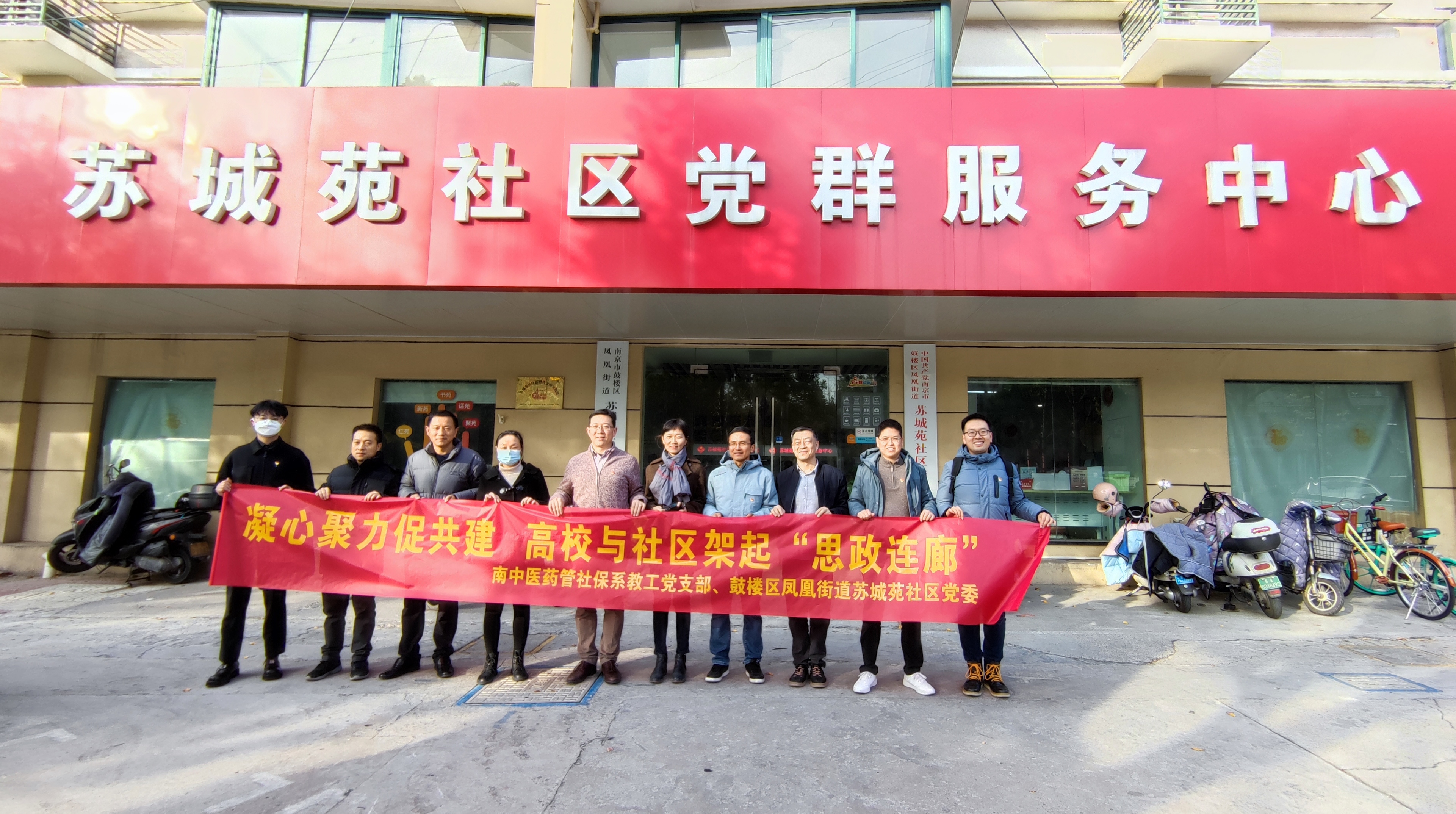 为推动学习贯彻习近平新时代中国特色社会主义思想主题教育走深走实,实现校地协同发展,11月30日下午,公司药管社保系教工党支部全体党员在支部书记杨勇同志的带领下来到鼓楼区凤凰街道,开展“凝心聚力,校地协同,搭建校地‘思政连廊’”主题党日活动。