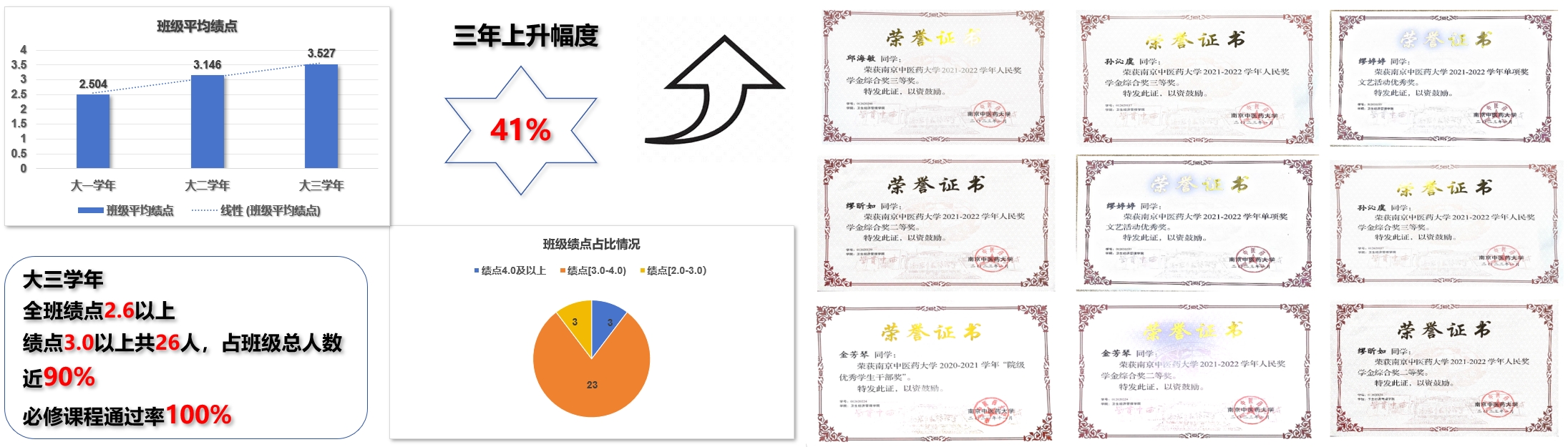 注重思想引领,强化使命意识。在团支书李晶金同学的带领下,围绕党的二十大报告对社会保障体系建设作出的重要部署,高质量完成每一次班团活动和双学小组活动,班团各项集体活动参加率达100%,获评“院级五四红旗团支部”称号。班级同学积极向党组织靠拢,现有党员(含预备党员)7人,党员比例达24%,多名同学荣获校院两级优秀共青团干部、优秀共青团员称号。