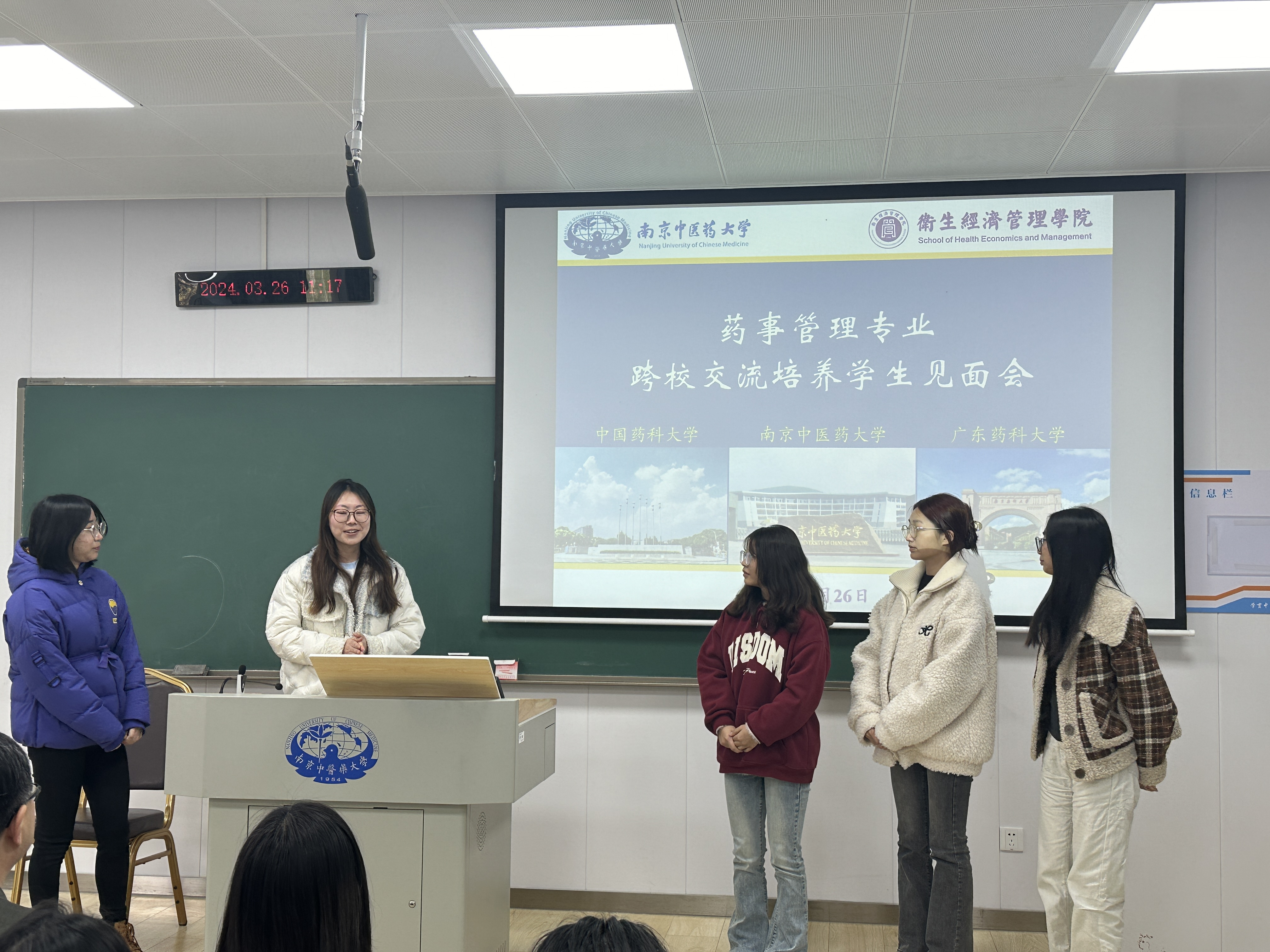随后,来自中国药科大学和广东药科大学的五位交换生同学分享了她们初来南中医学习和生活的感受。同学们对公司的学习氛围、课程设置及实施、专业建设特点给予了高度评价。同时,她们也对21药管同学的热情友好表示赞赏和感谢。在校园和图书馆的参观体验中,她们深刻感受到了南中医浓厚的学习氛围。
