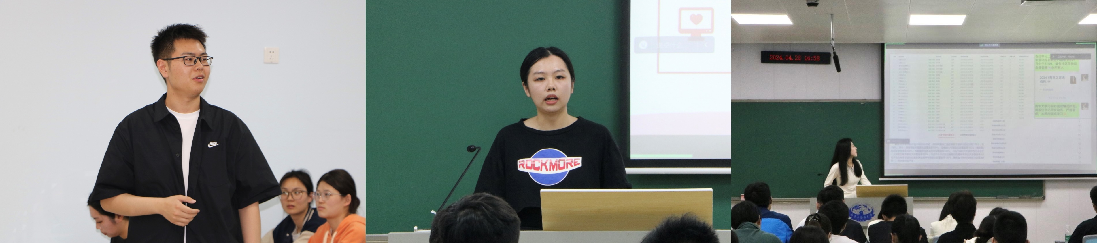 陈业昕学长以“提升能力,实现身份转变”为主题,向同学们分享了参与志愿服务的意义;陶星竹学姐寄语同学们“用一年不长的时间,做一件终生难忘的事”,勉励同学们积极参与志愿服务;尚也然学姐向大家详细介绍了志愿服务时间流程和工作内容,让同学们对志愿服务有了具体的了解;韩乔乔学姐线上分享时从工作和学习两方面给同学们介绍了参与志愿服务的意义和实际价值。